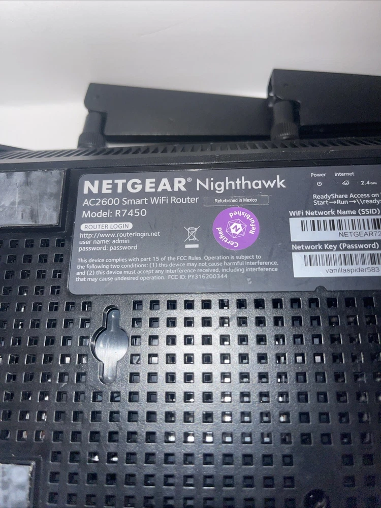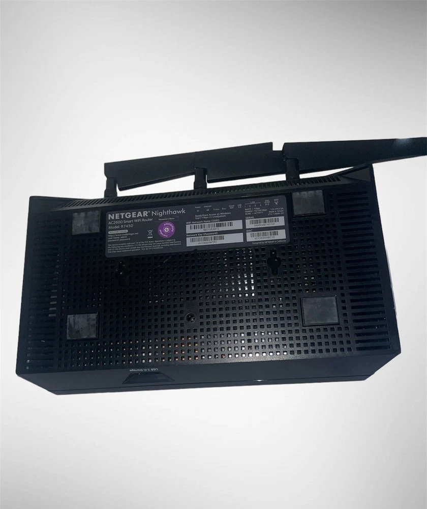 Connectivity:Wireless-Wi-Fi 802.11a, Wireless-Wi-Fi 802.11b, Wireless-Wi-Fi 802.11n, Wireless-Wi-Fi 802.11ac, Wireless-Wi-Fi 802.11gType:RouterBrand:NETGEARMaximum LAN Data Rate:1000 MbpsMPN:R7450UPC:Does not applyMaximum Wireless Data Rate:2600 MbpsColor:BlackNumber of LAN Ports:4gtin13:Does not applyFeatures:VPN Capabilities, For Gaming, Dual BandModel:NETGEAR Nighthawk AC2600