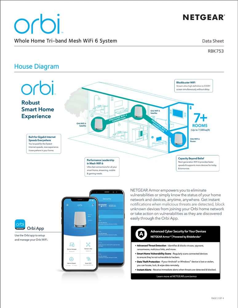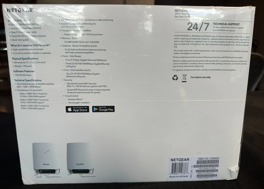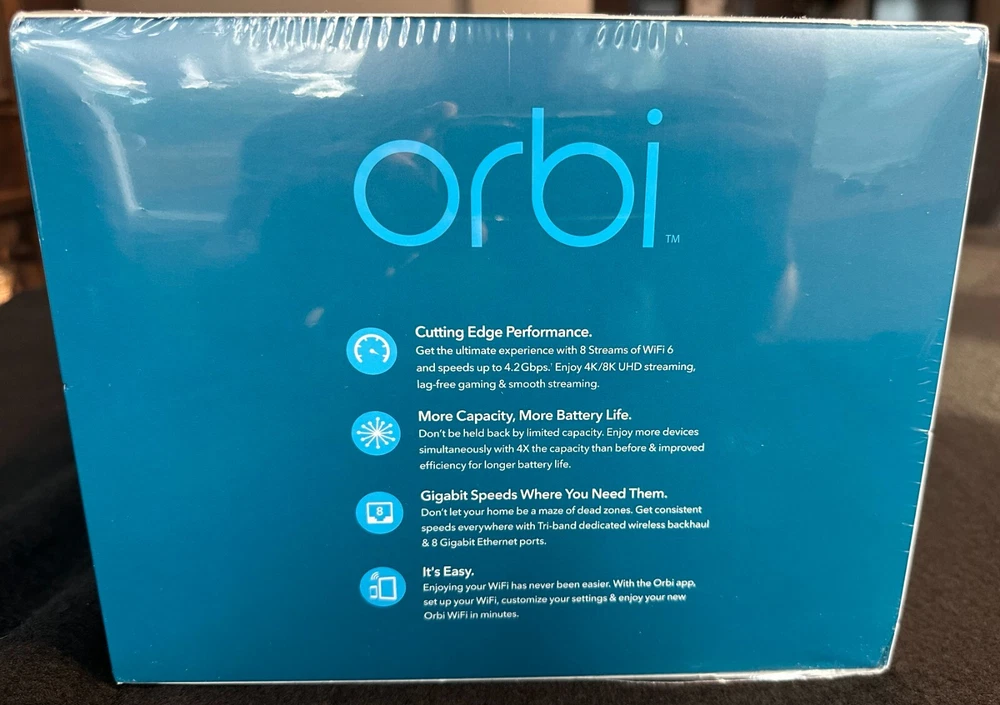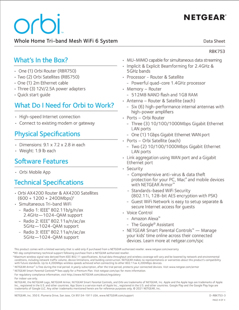 Netgear Orbi RBK753 AX4200 Whole Home Tri-Band Mesh WiFi 6 Router System 3-Pack Description Netgear Orbi RBK753 AX4200 Whole Home Tri-Band Mesh WiFi 6 Router System 3-Pack . Product Detail • Brand : Netgear • Model : Netgear Orbi RBK753 • Color: White • Type : Router Please message me if you have any questions.