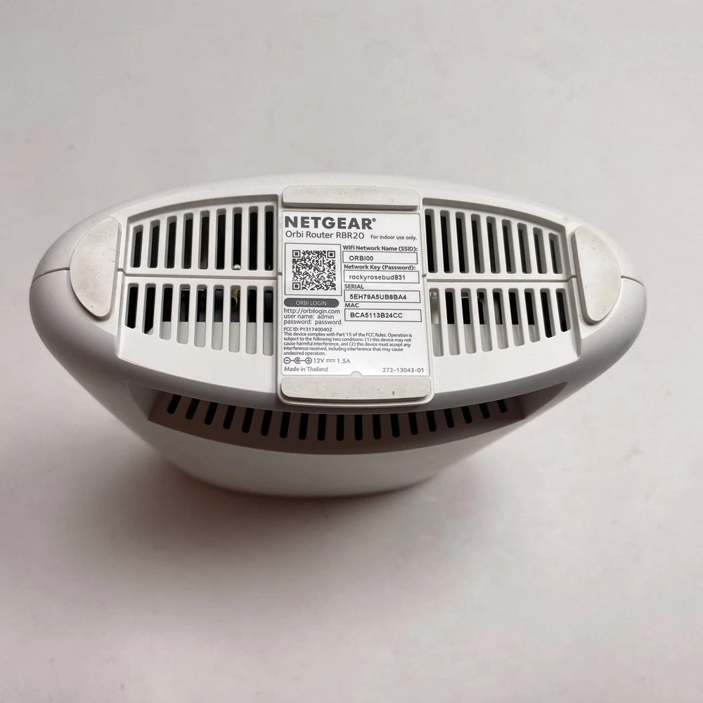 Model:Orbi Router RBR20Seller Notes:“In good working condition. Photos show the actual items you will receive.”Maximum LAN Data Rate:1000 MbpsUPC:Does not applygtin13:Does not applyColor:WhiteConnectivity:Wired-Ethernet (RJ-45), Wireless-Wi-Fi 802.11a, Wireless-Wi-Fi 802.11ac, Wireless-Wi-Fi 802.11b, Wireless-Wi-Fi 802.11g, Wireless, Wireless (Wi-Fi)Type:RouterBrand:NETGEARNumber of LAN Ports:1Ports:Ethernet (RJ-45)Features:Tri-BandMaximum Wireless Data Rate:2200 Mbps
