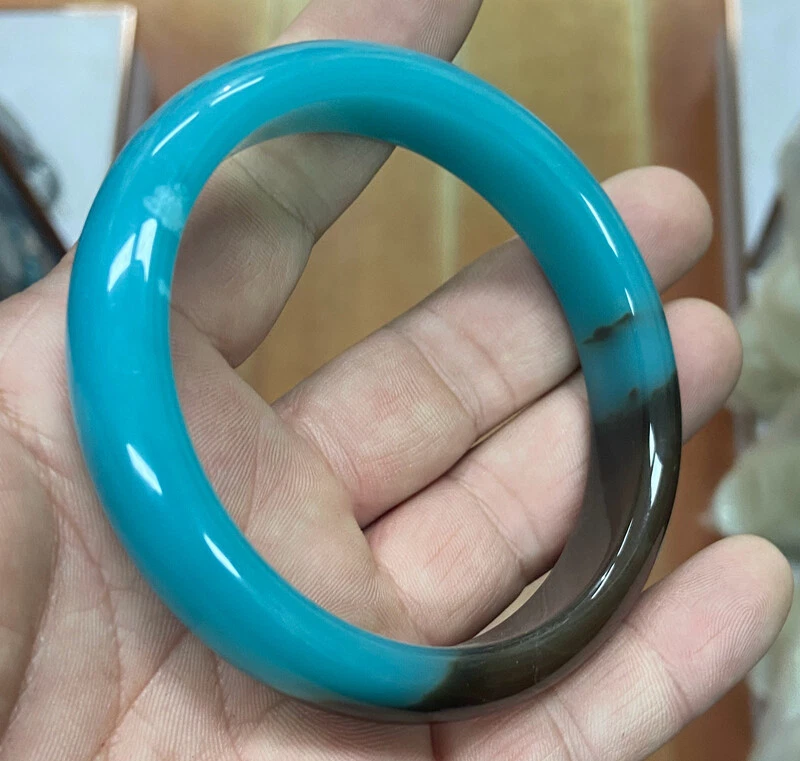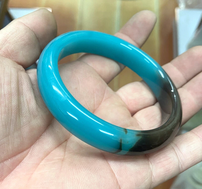 Natural Black Blue Jade Bangle Bracelet Jadeite Jewelry Amulet Women 54-64mm