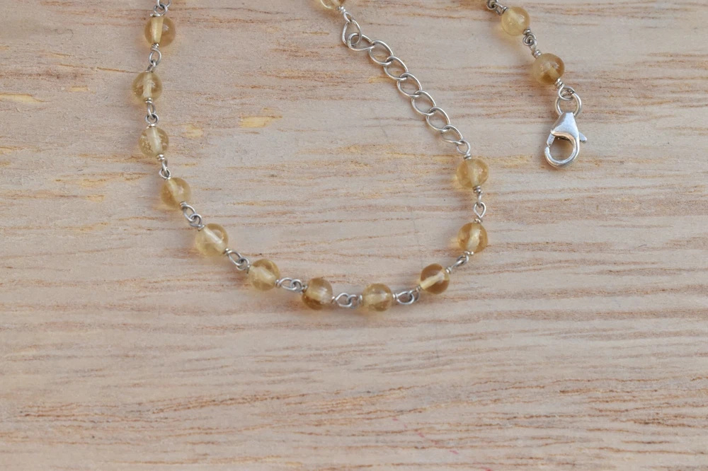 Welcome to our Shop! This bracelet is made with natural Citrine of 4mm size good quality handcrafted with sterling silver wire to give it elegant look. Bracelet has 4 cm/ 3cm adjustable chain for flexible fitting. This beautiful bracelet is made for all occasions. PERFECT GIFT FOR SPECIAL ONES! The listing uses professional photography that samples our collection. Each gemstone has its own beauty and is different in its own way, making them Unique in every parameter. YOU WILL RECEIVE THE MENTIONED STONE FROM OUR COLLECTION and will share picture before delivery . We can also customize it by choosing your choice of gemstones! When we customize jewelry for your clients we feel proud the share every details from selection of stones to getting the jewelry made , we will share you videos of the process !! KINDLY CONTACT US FOR FURTHER DETAILS! WE WOULD LIKE TO HEAR FROM YOU ! Gift packaging is available on request and is paid. Please contact for the same. Returns- We understand that it is very important to be satisfied with the Purchase you make. So for returns and exchange we request you to contact us within 3 days of delivery . Also it would be great if you could record while unpacking the parcel for better transparency ! the returns or exchange needs to be sent back and delivered within 7 working days. Return shipping is paid by the Buyer. For any queries Please feel free to message us. Normally we respond in maximum 24 hours. also visit our social media page - AGEEZA__ to get in touch with us !! Thank you