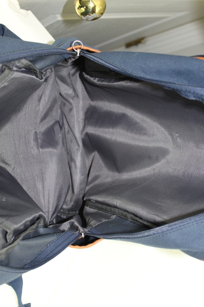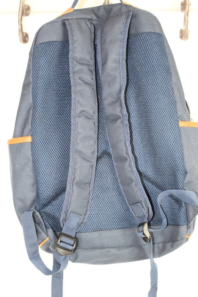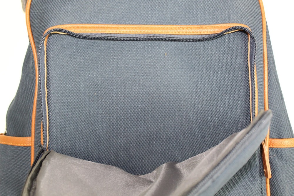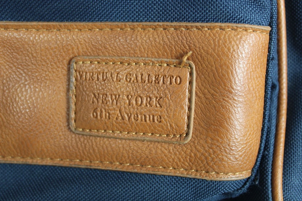 Virtual Galletto New York 6th Ave Navy Blue Back Pack Lap Top Bag Good condition no holes or stains some peeling of vinyl around bottom edge Adjustable straps 16" x 16" x 5"
