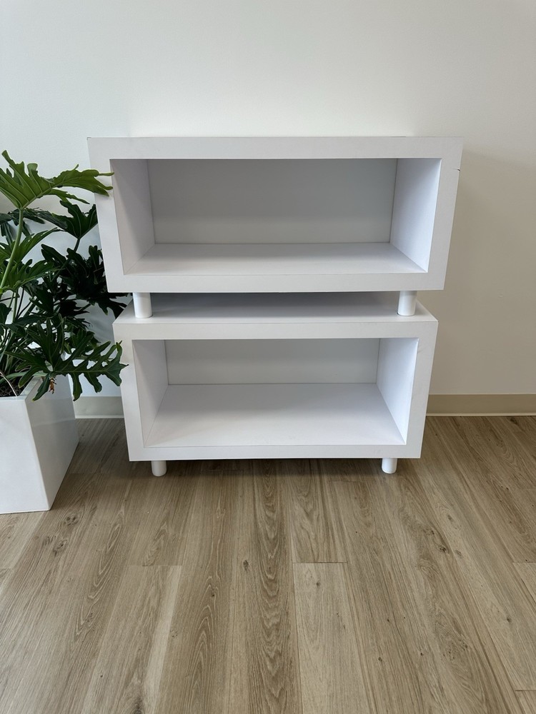 This Near Mint Condition White Open Display Pedestal is a sleek and versatile addition to any space, perfect for showcasing your prized items. Featuring a clean, modern white finish, this pedestal stands at 38" x 19" H, offering ample space for displays in homes, galleries, retail environments, or exhibitions. The stackable feature allows for customizable display arrangements, making it easy to create a dynamic presentation while saving valuable space. Built with sturdy legs for support, it combines both functionality and style, providing an elegant platform for everything from artwork to merchandise. Whether you're looking to enhance your decor or showcase products, this display pedestal is a practical and stylish solution in near mint condition.