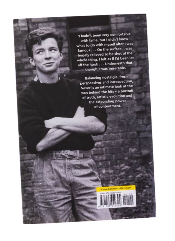 gtin13: 9781035049394 Narrative Type: Non-Fiction Vintage: No Author: Rick Astley Genre: Biographies & True Stories, History, Leisure, Hobbies & Lifestyle, Motivation, Photography Personalise: No ISBN: 9781035049394 Language: English Format: Hardcover Ex Libris: No Topic: Books Book Series: Never: The Autobiography Publisher: Macmillan Signed: No Personalised: No Inscribed: No Intended Audience: Adults Original Language: English Book Title: Never: The Autobiography Country of Origin: United Kingdom