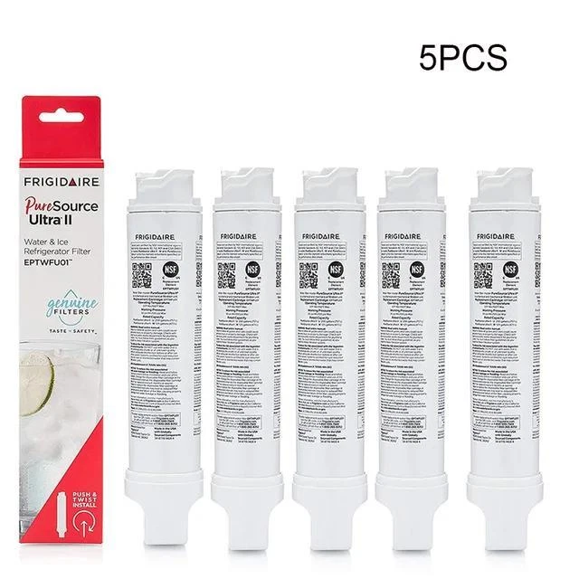 1-5 Pcs Activated Carbon Pure Source Eptwfu01 Ultra Ii Refrigerator Water Filter Freshen Up Your Fridge with Frigidaire PurePour Water Filters Keep your family safe and hydrated with the Frigidaire PurePour Water & Ice Filter. This high-quality filter effectively reduces up to 99% of contaminants, ensuring clean, great-tasting water and ice. Key Features: Superior Filtration: Removes impurities like chlorine, lead, and other harmful substances. Easy Installation: Simple push-to-lock installation for hassle-free replacement. Long-lasting Performance: Provides up to 6 months of clean, filtered water. Certified Quality: NSF and WQA certified for safety and performance. Upgrade your Frigidaire refrigerator with the PurePour Water & Ice Filter and enjoy the peace of mind that comes with knowing your family is drinking clean, healthy water. Please note this listing is for Frigidaire FPPWFU01, NOT Frigidaire EPTWFU01 Specifications: Media: Carbon Block. Primary Filter Media: Activated Carbon Block. Used in Brands: Frigidaire Model: Frigidaire FPPWFU01. Manufacturer's Id: FPPWFU01 Certification: NSF/ANSI Standard 42, 53 and 401, WQA Package Quantity: 1 Piece Weight: 0.5 pounds. Dimensions: 9.5 inches (length) x 2.3 inches (outside diameter) Filter Life (Gallons): 200 gallons or 6 months, whichever comes first. Flow Rate(GPM): 0.65 gallons per minute. Temperature range(°F): 33-100 Pressure Range (psi): 30-100 Micron Rating (Nominal): 0.5 Water Quality Requirements: Municipal Water/Well Water. Dear buyer! I am contacting you personally and hope you will take the opportunity to enjoy unique products that are well taken care of by our company. I wish you a good day and happy shopping! Shipping Fast Free Shipping Worldwide! Returns We accept returns 30 days from the package received. Payments All payments are accepted! Feedbacks The product came very well packaged. I'm very happy. thank you for everything. Seller strongly recommended. This is great! I recommend! The product looks amazing. Delivery was fast. Excellent seller, great communication. I advise everyone.