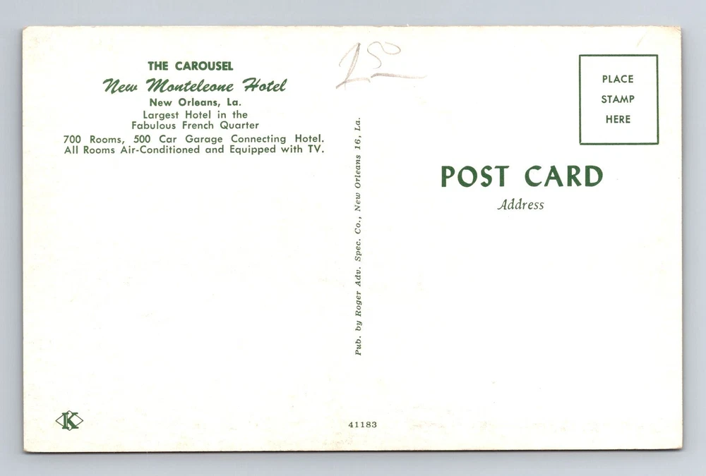 New Orleans LA-Louisiana, The Carousel, New Montelcone Hotel, Vintage Postcard