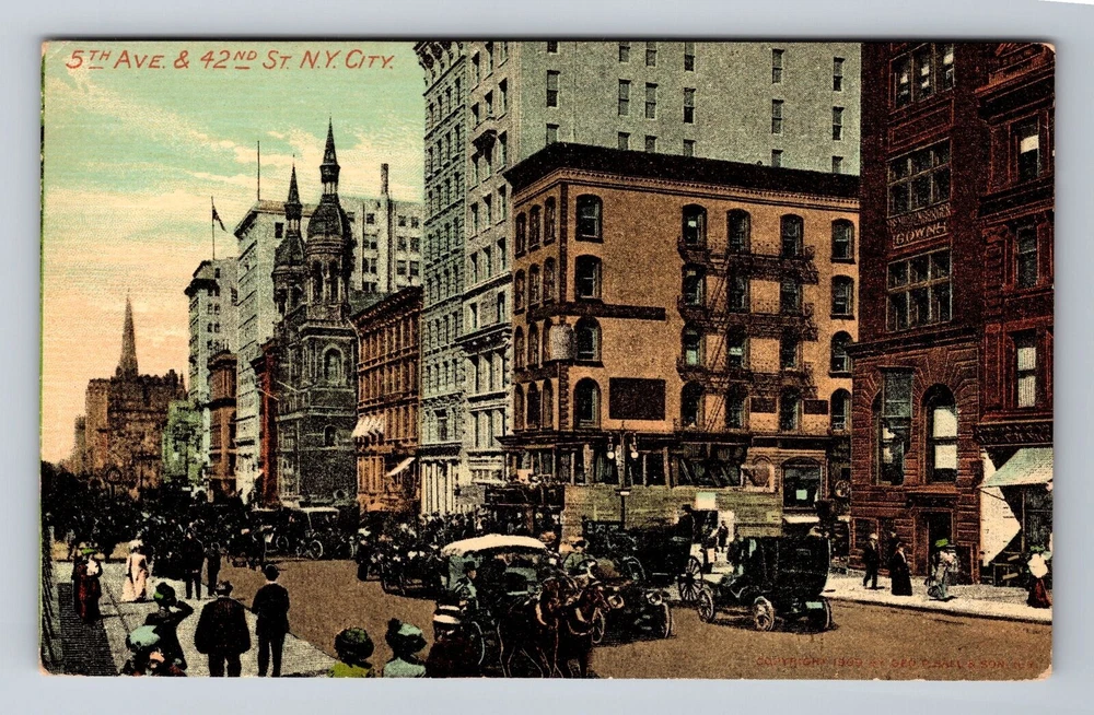 New York City NY, 5th Ave & 42nd St, Scenic View Souvenir Vintage Postcard