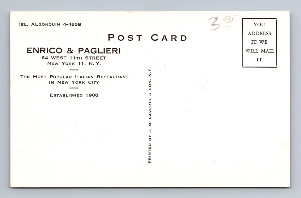 New York City NY, Enrico And Paglieri, Souvenir, Vintage Postcard