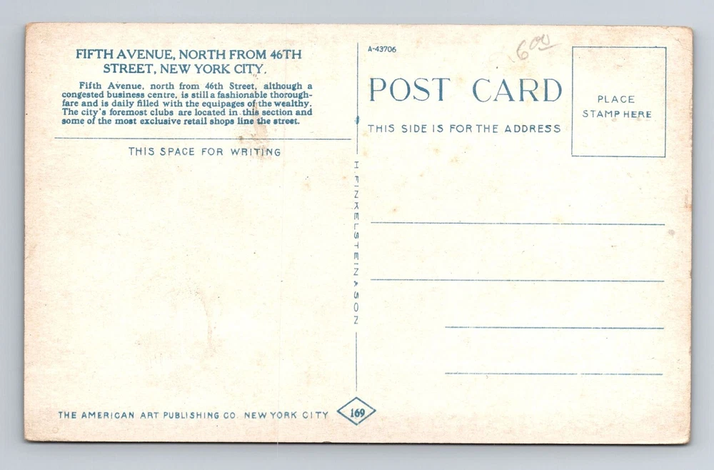 New York City NY, Fifth Avenue, North From 46th St, Souvenir, Vintage Postcard