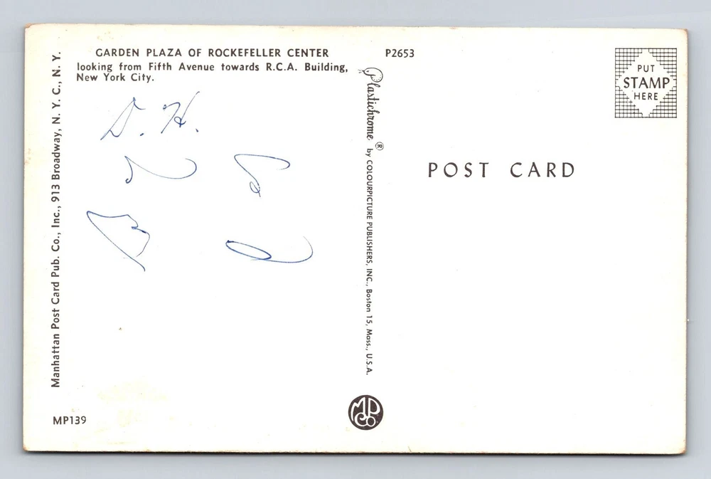 New York City NY, Garden Plaza, Rockefeller Center Vintage Souvenir Postcard