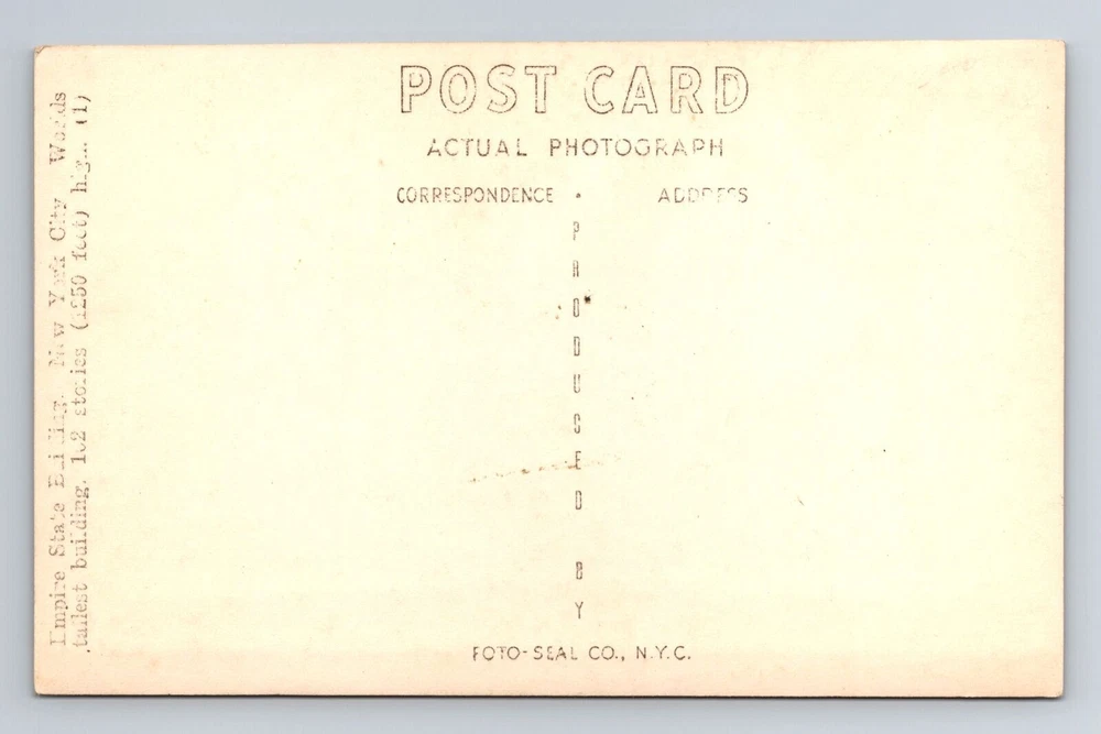 New York City NY, RPPC, Empire State Building, Vintage Postcard