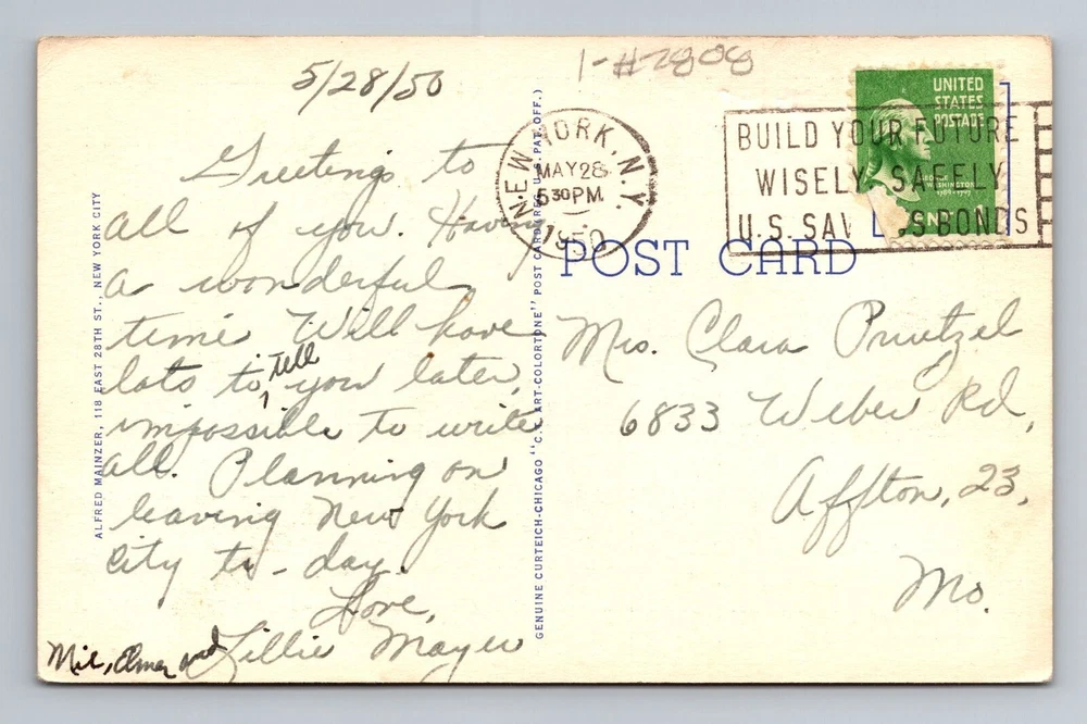 City: New York City Postage Condition: Posted Unit of Sale: Single Unit Original/Licensed Reprint: Original Material: Paper Subject: Cities & Towns Country/Region of Manufacture: Unknown Type: Printed (Lithograph) Size: Standard (5.5 x 3.5 in) Country: USA Theme: Cities & Towns Era: Vintage Region: New York