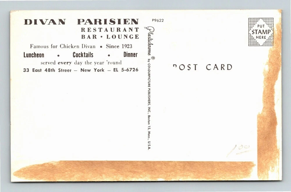 New York City, NY-New York, Divan Parisien Restaurant Vintage Souvenir Postcard