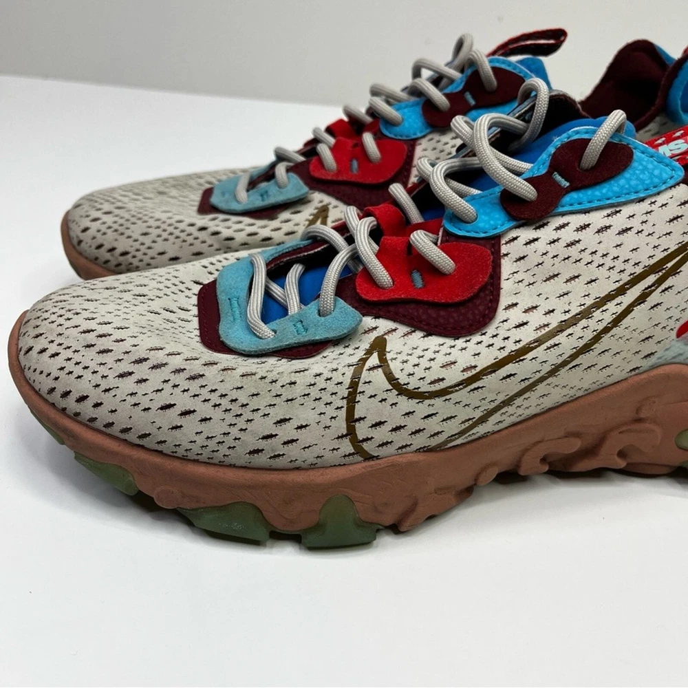 Nike Men's React Vision Desert Oasis sneakers multicolor - 11 Brand: Nike Size: 11 Type: Sneakers Color: Light Bone/Terra Blush/Photo Blue Closure: Lace Up Condition: Pre-owned. In Good Condition. The React Vision 'Desert Oasis' released as part of Nike's concept-drive D/MS/X line. Built with seamless mesh, the shoe's neutral base is highlighted by leather eyelets. Tongue and heel pull-loops provide easy on and off, while an external heel counter is included for stability. Underfoot, the React midsole provides cushioning, giving way to rubber pods on the outsole for traction. Comfortable, Walking, Outdoor, Workout, Athletic, Sporty, NIKE, Comfy, Everyday