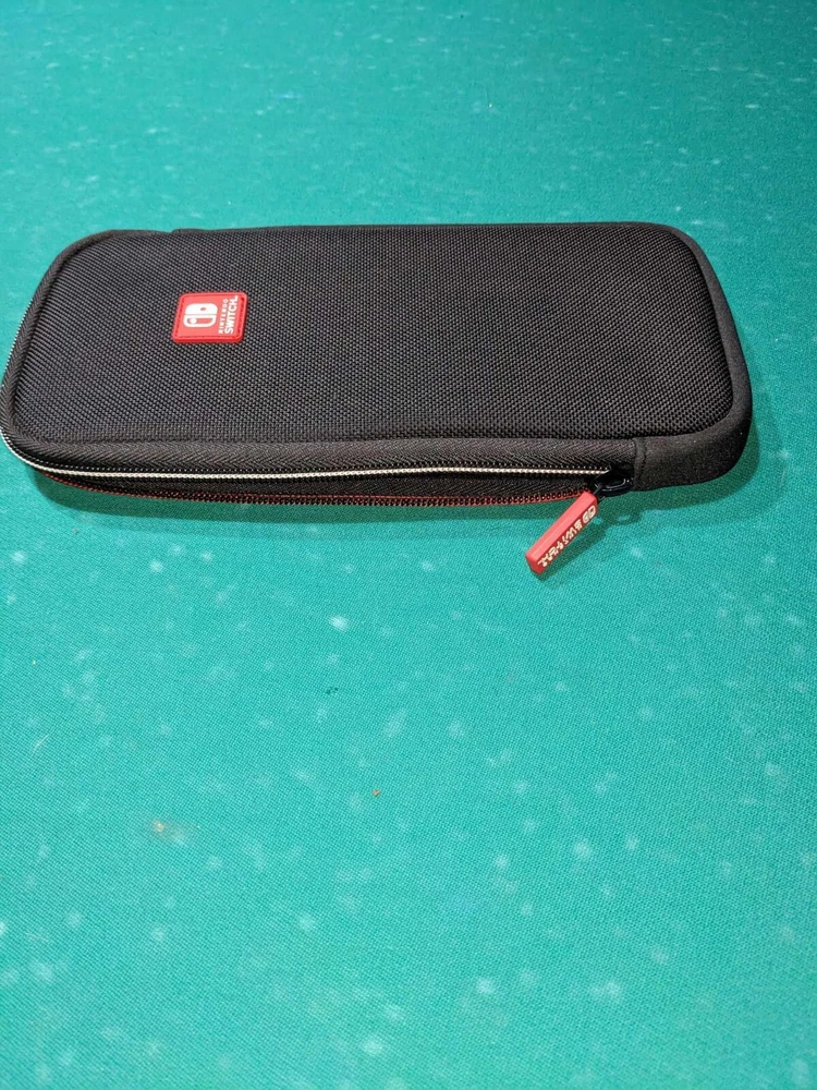Keep your Nintendo Switch safe and stylish on the go with this sleek black carrying case. Designed with durable nylon material, it offers a lightweight yet protective solution for your console, games, and accessories. The case boasts a snug fit for your Switch and related items, ensuring they stay secure during travel or storage.The simplistic design focuses on functionality, featuring a minimalist black color that complements any gaming setup. The carrying case is an official Nintendo product, guaranteeing compatibility and adding a touch of authenticity to your gaming gear. Whether you're commuting or heading to a friend's house, keep your gaming essentials organized and accessible.