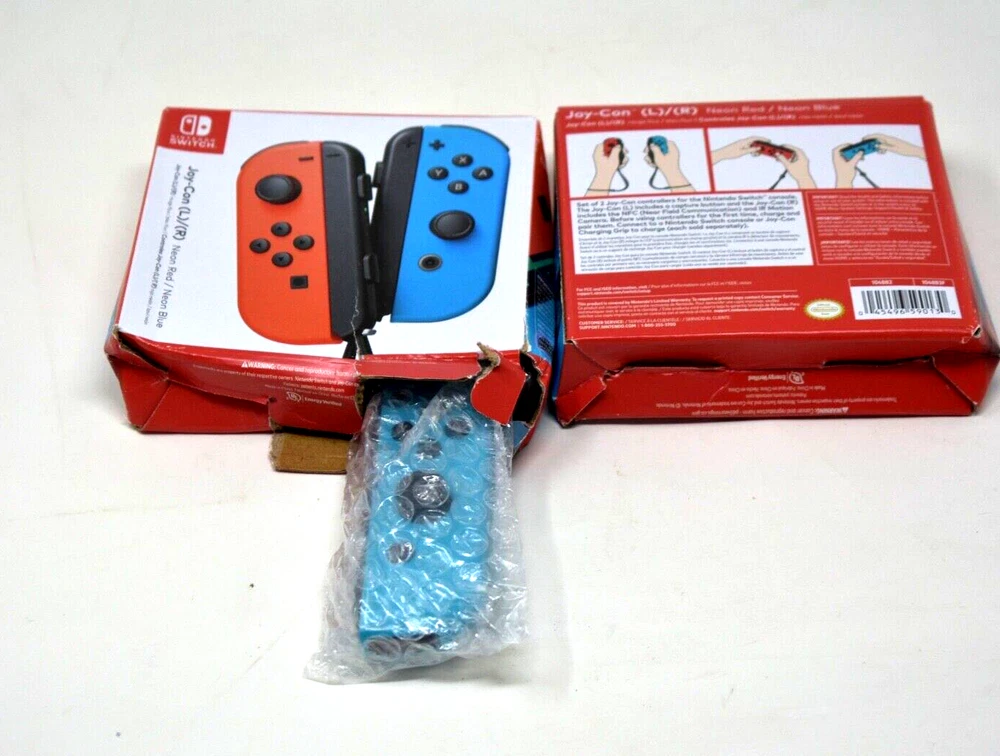 Nintendo Switch OEM Joy-Con Left/Right Controller Red/Blue NEW Dmg Box Controllers are NEW and UNUSED. Box shows DMG handling, shelf wear. (1) Box Nintendo Switch OEM Joy-Con Left/Right Controller Neon Red/Neon Blue