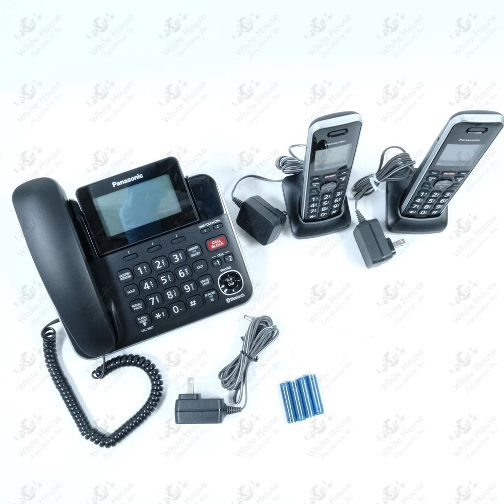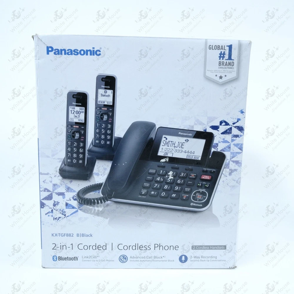Condition: Has scratches. Looks good. Works great! Description: Panasonic - KX-TGF882B Cordless Phone - Black What's included: Panasonic KX-TGF882B 2 additional handsets, 4 batteries Only the items shown in pictures will be included. What's not included: Documentation, Phone line cable Belt clip and all other accessories. Original box and packaging: Yes Key Specs Speakerphone Yes Bluetooth Enabled Yes Expandable Yes Frequency DECT 6.0 Digital Paging Locator Yes Answering System Included Yes General Product Name KX-TGF882B Link2Cell DECT 6.0 Expandable Corded/Cordless Phone with Digital Answering System and Smart Call Blocker Brand Panasonic Model Number KX-TGF882B Color Black Color Category Black Features Backlit Keypad Yes Volume Control Yes Intercom Yes Display Type LCD Number of One Touch Dial Buttons 3 Call Waiting Yes Caller ID Yes Number Of Incoming Lines 1 Call Functions Flash Function No Hold Button Yes Included Handsets Included Yes Number Of Expansion Base Stations Included 1 Number Of Expansion Handsets Included 2 Compatibility Hearing Aid Compatible Yes Number Of Expansion Handsets Supported 6