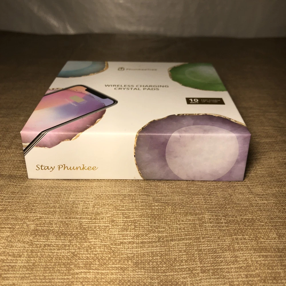 Phunkeetree Wireless Charging Crystal Agate Pad Fast Charge 10 Watt Pink Compatible with Apple and Samsung Wireless Devices New in Box Box X310