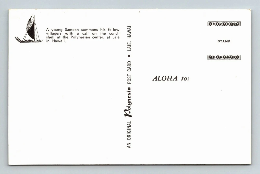 Polynesian Center, Call On The Conch Shell, Antique, Hawaii Vintage Postcard