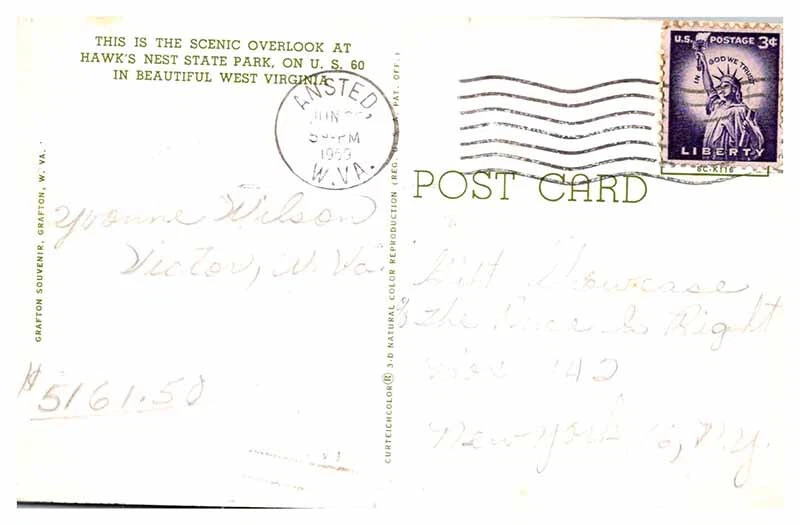 Original/Licensed Reprint: Original Size: Standard (5.5 x 3.5 in) City: Hawks Nest State Park Era: see features for era Region: West Virginia Subject: Bridge Type: Printed (Lithograph) Continent: North America Country/Region of Manufacture: United States Unit of Sale: Single Unit Material: Paper Postage Condition: n/a Country: USA