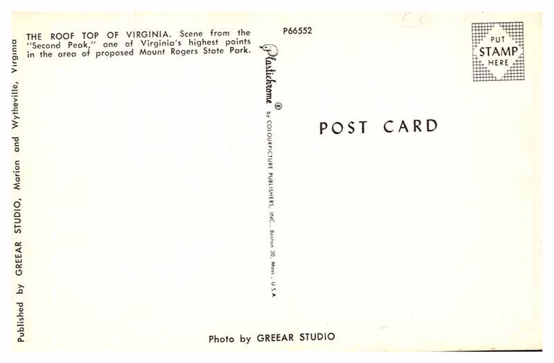 Era: see features for era Country/Region of Manufacture: United States Type: Printed (Lithograph) Postage Condition: n/a Size: Standard (5.5 x 3.5 in) Country: USA Continent: North America Subject: Panoramic Region: Virginia Material: Paper Original/Licensed Reprint: Original Unit of Sale: Single Unit City: Mount Rogers State
