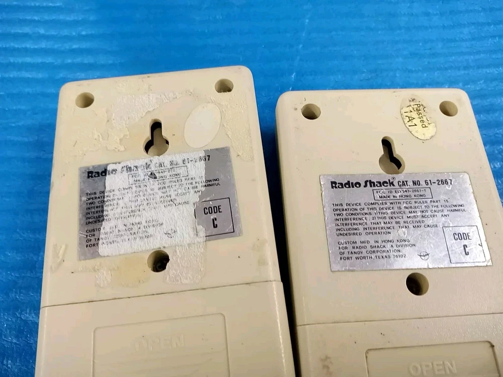 2 radio shack rf wireless remote controls work with code-C wall switch both have new Energizer max 9 volts both work great,two are great for having one at each end of the room to control the same lite or appliance, will ship out fast to lower 48 STATES ONLY!