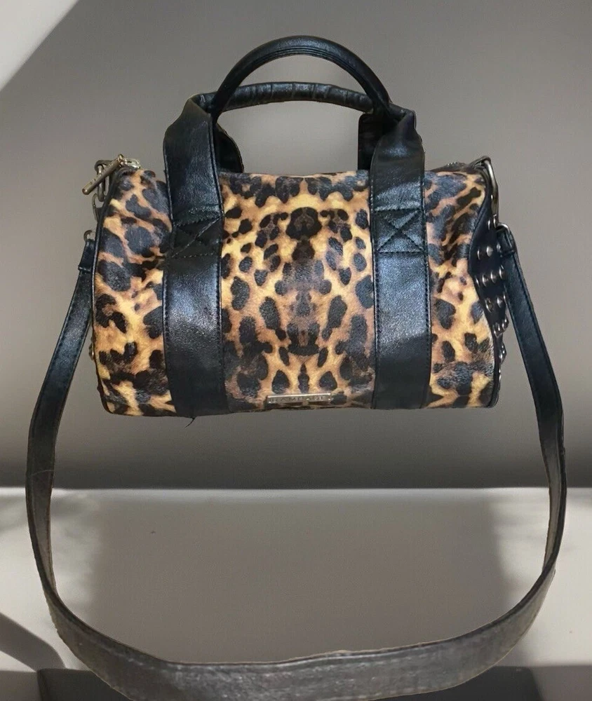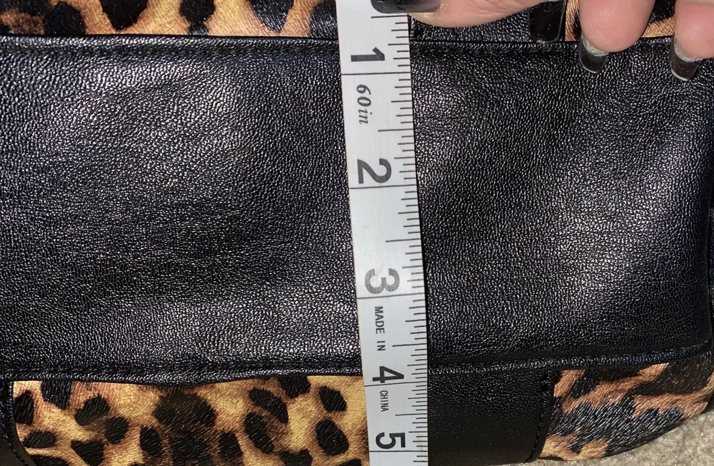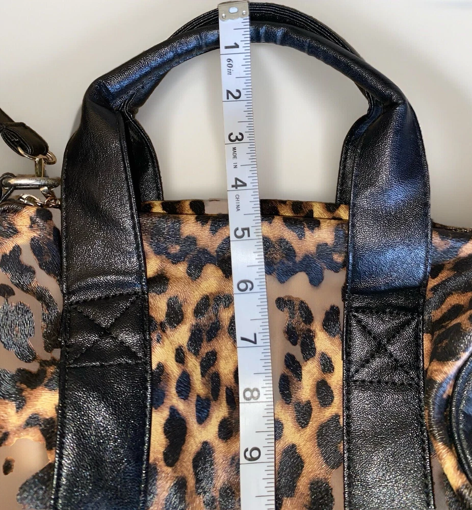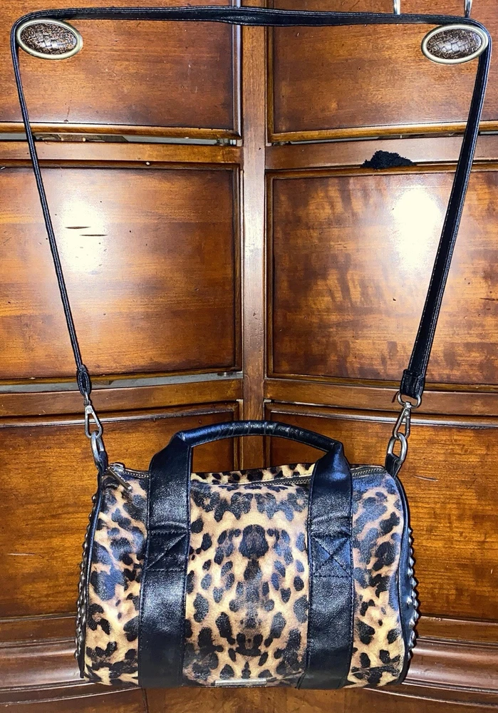 Unleash your punky glam side with this super cute leopard print studded Boston satchel bag with detachable crossbody strap by Rampage!! Details: • Condition: Very Good • Brand: Rampage • Style: Boston bag • Vibrant leopard printed exterior with black handle strap accents • Interior: Black fabric lining with zipper pocket & slip pockets • Silver tone hardware • Silver stud grommets on both ends • Black rolled double top handles • Black detachable crossbody strap with silver clips Measurements (approx): • W: 11” • D: 4” • H: 8” Make me an offer!!