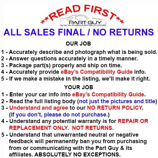 ::part-guy:: Toggle navigation Menu ABOUT US FAQ's TERMS & Condition WARRANTY Contact us Menu HOME ABOUT US FAQ's TERMS & Condition WARRANTY Contact us Product DESCRIPTION PLEASE READ OUR TERMS AND CONDITIONS regarding warranty & returns BEFORE PURCHASING! 1967 Chevy Chevelle, Malibu & El Camino 1966-67 Pontiac GTO, LeMans & Tempest 1966-67 Buick Skylark & Special 1966-67 Olds Cutlass, F85 & 442 A/C EVAPORATOR & HOUSING - RECONDITIONED PROFESSIONALLY REBUILT BY THE PART GUY LLC IN TAMPA, FL. This listing is for a reconditioned evaporator & housing unit correct for all the above cars with factory air-conditioning. The evaporator has been flushed clean internally, pressure tested with Nitrogen at 250psi in a tank of water and acid cleaned externally. The housing has been cleaned and painted black. A NEW replacement style expansion valve & NEW 134a POA Eliminator/Upgrade Valve have been installed. The expansion valve bulb protector bracket has been zinc plated. A NEW drain hose has been installed. WHAT YOU SEE IS WHAT YOU GET. ALL SALES FINAL - NO RETURNS - NO EXCEPTIONS. ABOUT US FAQ'S TERMS & CONDITIONS WARRANTY CONTACT Copyright © THE PART GUY. All rights reserved. REBUILT 66-67 GTO CUTLASS 1967 CHEVELLE A/C Evaporator Unit Air Conditioning AC