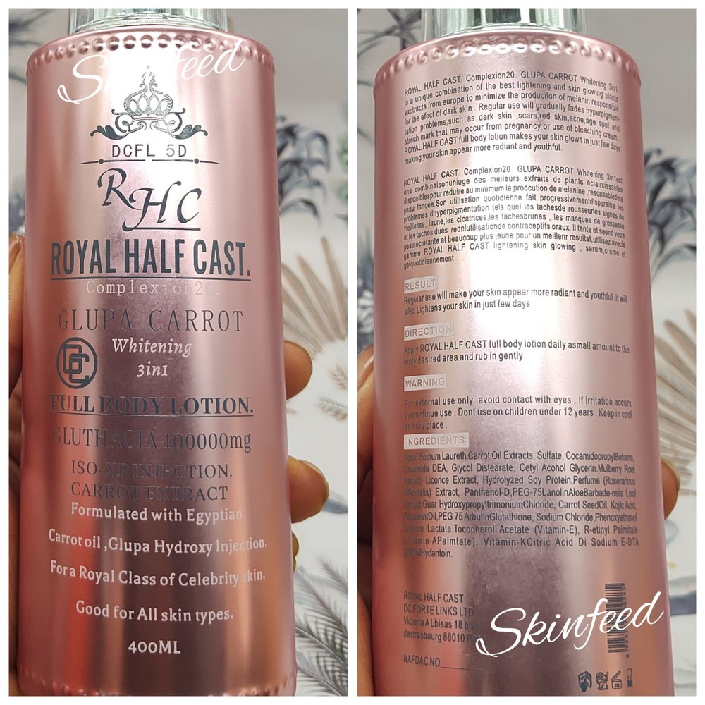 RHC Royal H-C Glupa Carrot whitenezer 3in1 body lotion spf50x1 400ml This is a unique combination of The best lightning and skin glowing extracts to whitening your skin. Regular use will gradually fades hyperpigmentation, red skin, acne aging spots and stretch mark. this body lotion makes your skin glow in just a few days making your skin appear more radians and youthful.