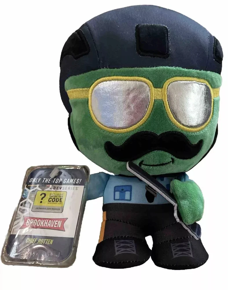 Year Manufactured: 2022 Video Game Name: Brookhaven Type: Plush Doll Model: Brookhaven Chief Rotten Country/Region of Manufacture: China Character: Chief Rotten Video Game Series: Roblox UPC: Does Not Apply gtin13: Does Not Apply Brand: Jazwares Features: Virtual Code