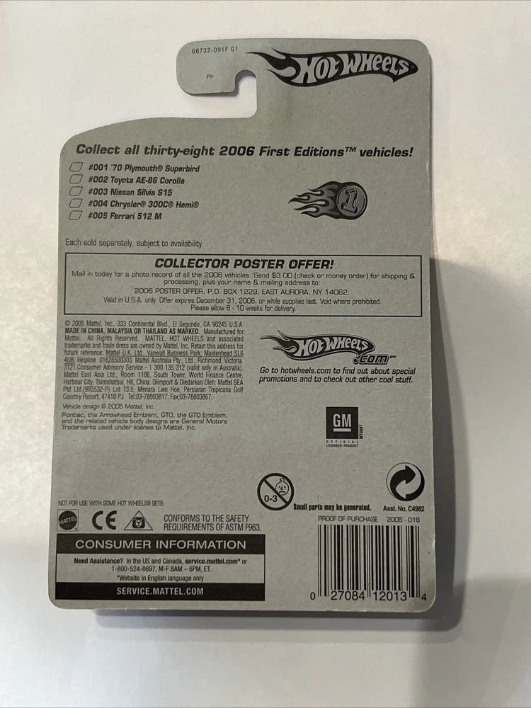 😊😊 PLEASE SEE OTHER ITEMS, I M LISTING THIS FROM A MEGA NERF LOT - I WILL BE LISTING NERF PISTOLS, RIFLES, ACCESSORIES, ETC - NERF RIVALS WHITE/RED, ACCUSTRIKE, TERASCOUT, RAMPAGE, ZOMBIE ETC m, VIDEO GAMES (NINTENDO GB, DS,WII, PSP) - HOT-WHEELS 100S, TECH DECKS, MATCH BOX, MUSCLE MACHINES, FUNKO POPS, TOYS, PLUSH, BOARD GAMES, DVDS, CDS, BLURAYS PUZZLES, LEGOS, ETC FREE SHIPPING ⭐️⭐️⭐️⭐️ PROCESSING TIME: 3 DAYS I HAVE ALMOST 100 FUNKO POPS FROM VARIOUS SETS TO INCLUDE: MASTERS OF THE UNIVERSE, STRANGER THINGS, MARVEL, DISNEY, JUMBO SIZE ETC - PLEASE SEE STORE - FAST FREE SHIPPING - I WOULD BE WILLING TO COMBINE SHIPPING FOR MULTIPLE ORDERS - I HAVE MANY ITEMS PER SET - ITEM: - HOTWHEEL - DATE: 1969 NAME : 2005 First Editions REALISTIX ‘69 Pontiac GTO # : 018- 18 of 20 SHORT CARD? - No DESCRIPTION: - New, retired RETRO/ VINTAGE - PREOWNED ITEMS MAY SHOW SIGNS OF SHELF WEAR DUE TO THE NATURE OF AGE. THANKS MUCH FOR YOUR SUPPORT MY DEAR CUSTOMER ⭐️🙏