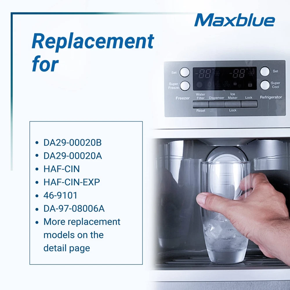 Paramount of Purity That is what pursues! Certified by NSF 42 MB-00020B-P refrigerator water filter is certified by NSF International against NSF 542 to reduce health-related contaminants Compatible Refrigerator Models RF22K9381SG, RF22K9381SR, RF22K9581SG, RF22KREDBSG, RF22KREDBSR, RF22M9581SG, RF22M9581SR, RF23HCEDBBC, RF23HCEDBSR, RF23HCEDBWW, RF23HCEDTSR, RF23HSESBSR, RF23HTEDBSR, RF23J9011SG, RF23J9011SR, RF24FSEDBSR, RF24J9960S4, RF25HMEDBBC, RF25HMEDBSG, RF25HMEDBSR, RF25HMEDBWW, RF260BEAEBC, RF260BEAESG, RF260BEAESP, RF260BEAESR, RF260BEAEWW, RF261BEAEBC, RF261BEAESG, RF261BEAESP, RF261BEAESR, RF261BEAEWW, RF263BEAEBC, RF263BEAESG, RF263BEAESP, RF263BEAESR, RF263BEAEWW, RF263TEAEBC, RF263TEAESG, RF263TEAESP, RF263TEAESR, RF263TEAEWW, RF265BEAESG, RF265BEAESR, RF26HFENDSR, RF26J7500BC, RF26J7500SR, RF26J7500WW, RF28HDEDBSR, RF28HDEDPWW, RF28HDEDTSR, RF28HFEDBBC, RF28HFEDBSG, RF28HFEDBSR, RF28HFEDBWW, RF28HFEDTBC, RF28HFEDTSR, RF28HMEDBBC, RF28HMEDBSR, RF28HMEDBWW, RF28HMELBSR, RF28JBEDBSG, RF28JBEDBSR, RF28K9070SG, RF28K9070SR, RF28K9380SG, RF28K9380SR, RF28M9580SG, RF28M9580SR, RF30HBEDBSR, RF30HDEDTSR, RF30KMEDBSG, RF30KMEDBSR, RF31FMEDBSR, RF31FMESBSR, RF323TEDBBC, RF323TEDBSR, RF323TEDBWW, RF32FMQDBSR, RF34H9950S4, RF34H9960S4, RH22H9010SG, RH22H9010SR, RH25H5611BC, RH25H5611SG, RH25H5611SR, RH25H5611WW, RH29H9000SR, RS25H5000BC, RS25H5000SR, RS25H5000WW, RS25H5111BC, RS25H5111SG, RS25H5111SR, RS25H5111WW, RS25H5121BC, RS25H5121SR, RS25H5121WW, RS25J500DBC, RS25J500DSG, RS25J500DSR, RS25J500DWW, RF28HFEDTWW, RF26HFENDWW, RF26HFENDBC, RF4287HARS, RS265TDRS, RS261MDWP, RS261MDBP, RS263TDBP, RS265TDBP. refrigerator water filter not only features prior filtration performance but also certified by authority NSF 42 and 372 for lead-free materials. Brilliant filtration: The filter can reduce a wide range of harmful substances in water including heavy metals, chlorine, odor, THM, VOCs, particles, cadmium, and all other major impurities, which has been tested by an independent third-party laboratory. Perfect fit: Our professional research team make effort to produce perfect fit refrigerator filters with exquisite engineering design without water leakage issues. Premium filter material: adopts 100% selected coconut shell carbon block that contains larger surface area and more micropores than inferior carbon block. Pure-tasting water: The adopted filter material in this replacement refrigerator filter adsorbs better. So, you get clean, fresh, and great-tasting water at all times. Month install stickers: Simply stick it onto your replacement water filters to know when it’s time to change it. Keep you drinking fresh with a little add-on. The filter life is 6 months or 300 gallons, which will vary based on the water condition. Hassle-free installation: The way we spend our time defines who we are. strives to save your precious time by offering tool-free refrigerator filter replacement. Be responsible for each product: Each product or even a small component manufactured by has to pass extremely high-standard examinations to reach the top requirement on the market. It’s not an ending if the filter leaves our factory. We will take responsibility for each of them. Replacement for models: Samsung DA29-00020B, DA-97-08006A-B, DA-97-08006A, DA-97-08006A-B, DA-97-08006B, DA29-00019A, DA2900019A, DA2900020A, DA2900020A, RF28HMEDBSR, DA29-00020A/B, HAF-CIN/EXP, RF4287HARS, RF263TEAESG, A97-08006A, RH22H9010SR, RF23J9011SR, RS25J500DSG, RF23HCEDBSR, RS25H5111SR, RF263BEAESG, RF28HFEDBSR, RF22KREDBSR, RS25J500DSR, RF28HDEDBSR, RF28K9380SG, RF25HMEDBSR, RF26J7500SR, DA29-00020A, HAF-CIN, HAF-CIN-EXP, HAF-CINEXP, HAFCIN, 04609101000, 09101, 46-9101, 469101. Replacement for multiple models: WS627, CF7, AQF-FF27, WD-F27, WDS-F27, WDP-F27, FL-RF27, RWF0700A, GF-20B, PL-200, CWMF021, FIN-7, R-9101, APF-0300, WF294