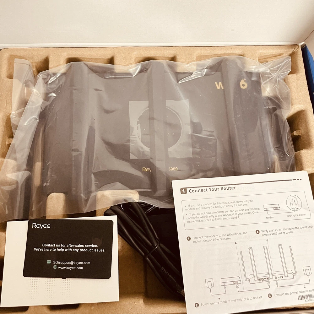 Type:RouterData Transfer Rate:3000 Mb per secondMPN:AX3000Features:Beamforming, Dual-Band, Access Point Mode, Guest Mode, WPSBrand:ReyeeFrequency Band Class:Dual-BandColor:BlackFrequency:160 MHzRecommended Uses For Product:Home, GamingConnectivity:Wireless, Wireless (Wi-Fi), EthernetNumber of LAN Ports:2Model:AX3000