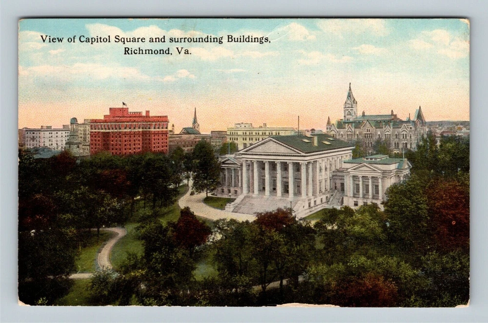 Richmond VA, State Capitol Square, Park, City Hall, Virginia Vintage Postcard