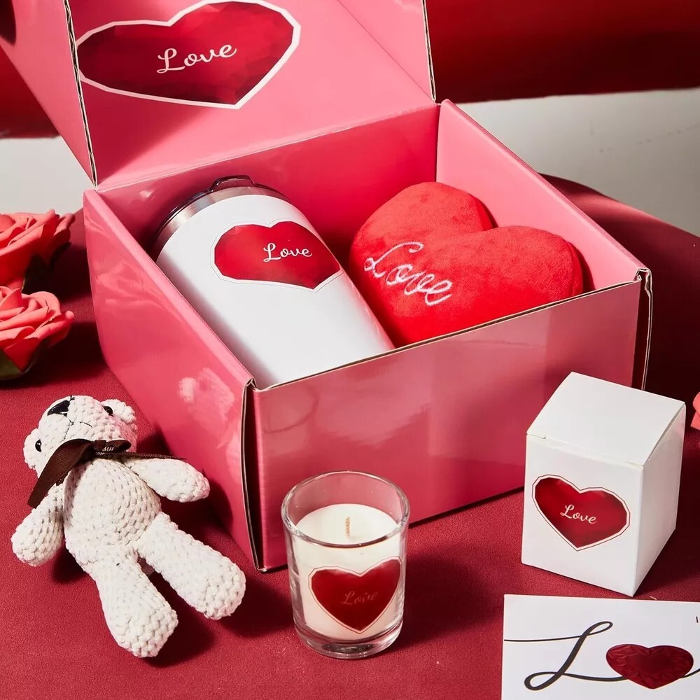 About this item 【Perfect Gift Box for Every Occasion】Every item in our gift set has been carefully selected and curated to create the most special moment for that lady in your life. Love gift box is suitable for her birthday, Valentine's Day, anniversary, mother's day, women's day and more. Gifts for women who have everything 【Heartwarming Gift】Gifts Basket includes a 20oz insulated stainless steel tumbler that says "LOVE", a heart shaped pillow, a plush bear , a soy wax candle and a greeting card. Whether its a gift to celebrate a wedding, birthday, mother's day, anniversary , gift baskets will make a truly unique and treasured gift 【Romantic Anniversary Gift】 Whether you are lighting it for a romantic dinner or creating an intimate moment in the bedroom for a couple, this Love You Candle will make your anniversary or Valentine's Day even more special with its warm candlelight and rose scent! 【Valentine's Day Romantic Gift】Heart Valentine's Day plush can not only be given as a gift on Valentine's Day, but also as home decoration.The cute heart design is perfectly matched with any room, creating a beautiful and unique vitality atmosphere, is the warmest gift for a girlfriend and wife 【Love tumbler cup gift】This Valentine's Day love tumbler cup is made of unbreakable 304 stainless steel, which is reliable, not easy to rust, and the double wall insulated design of the wine tumbler can keep it dry from the outside, comfortable to hold and portable to carry, which can keep your drinks cold or hot for a long time Shipping We offer FREE shipping on all orders! We ship within Three business days of payment, usually sooner. We use a selection of shipping services such as UPS, FedEx, USPS etc. We only ship to the lower 48 states, no APO/FPO addresses or PO Boxes allowed. Local pickups and combined shipping options are not provided at this time. Return You can return a product for up to 30 days from the date you purchased it. Any product you return must be in the same condition you received it and in the original packaging. Please keep the receipt. Payment We accept payment by any of the following methods: PayPal Please pay as soon as possible after winning an auction, as that will allow us to post your item to you sooner! Feedback Customer satisfaction is very important to us. If you have any problem with your order, please contact us and we will do our best to make you satisfied. Contact Us If you have any queries, please contact us via ebay. We usually respond within 24 hours on weekdays. Please visit our eBay store to check out other items for sale! Thank you for shopping at our store. Disclaimer We are working with different suppliers in USA to deliver the item to your doorstep. If you have any issues regarding the item, Feel free to ask.