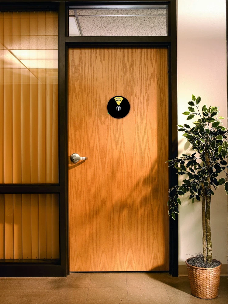 Introducing a new and fancy form of office and home door signs and doorl mounts, the signs are with six different text zones: AVAILABLE, BACK SOON, VACATION, WORKING FROM HOME, MEETING, GONE FOR TODAY, ensure that your schedule and work won't be abruptly interrupted. Items Included: 1 Piece only in the package sign. Dimensions: 5.91"L x 5.91"W rounded corners. Material: Paper, Plastic. Simple Mounting: This office sign's magnetic backing and strong adhesive tape make it simple to attach it to a door or window. It is simple to switch between the six options on sign. We believe that you will love our product. Press "ADD TO CART" now and when you do, consider getting . for you and as a gift for a friend! We treat every customer with 100% sincere heart. If for any reason you don’t love your wall mount, please reach out so we can make it right! SWITCH BETWEEN 6 OPTIONS: Every option of AVAILABLE, BACK SOON, VACATION, WORKING FROM HOME, MEETING, GONE FOR TODAY is convenient for others to know if you are in a meeting or on an important . Easy switching between 6 colorful office door signs grab attention easily. You can add sign of vacation, or back soon as status indicator in your office. KEEP YOUR OFFICE INFORMED: This is helpful in avoiding any unhealthy knock or explanations and you will be more focused in your task. Available in Black background with bright-full tags. The best gift for your boss and perfect way to inform preferably reach you or not. Very useful for offices, in meeting progress, working from home or in room needed privacy with gone for today sign and great for special education teacher. MATERIAL TYPE: Available in Black Color and Plastic material. 6 Paper tags for office door signs of available, back soon & so on. The sign uses best in class with 3M high performance tape and including 5 magnets for solid hold. Strong clinging sticker tags, and best for any type of privacy door with gone for today sign, back soon sign on clock, available in your area, working from home, vaction sign and back soon. EASY TO BE WITH: Installation, strapping, weightless, not runny colors, 5-inches diameter. Easy to hang, easy to read of office sign for door and wall. The office sign, or any office door sign are easy to handle manually and will perfectly fit to your door. 100 % SATISFACTORY PRODUCT: We are committed to providing our customers with the best quality products. If you are not satisfied with any of our products, please us and we will do our best to provide you with a satisfactory answer.