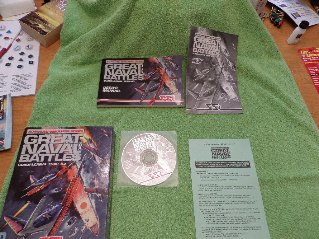 You're looking at a copy of SSI's Great Naval Battles for the PC complete in the box including manual, quick reference guide and old promotional material. The game is on 3X 3 1/2 High Density floppies. Please make sure that your system is compatible, this game has not been tested. GNB 2, 3 and 4 are on CD discs up to Windows 95-98. As always, we are happy to combine shipping on multiple purchases. Visit our ebay store or search for gamelover-1 for more fantastic bargains!