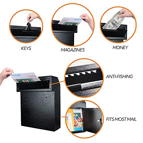Return Policy Fast Delivery Trusted seller Through The Door Mail Drop Box - 1.2mm Steel Payment Dropbox - Door Mount Theft Proof Mailbox - Locking Deposit Drop Box for Night Key, Deposit, Cash, and Rent (Black) Product Description STURDY MATERIAL: Made of 1.2mm thick steel, this heavy duty metal lock box is not only long lasting, but also provides great protection for your house mail, letter, envelope, money, check, and keys for business office and home. FITS MOST DOORS: This mailbox with lock and key can be mounted on wooden doors up to 1.75 inch, ideal as a residential and commercial mailbox. Hardware is included! (Note: this locking mailbox is a door drop box; NOT for wall.) SAFE & SECURE: Our 12" x 4.25" x 15'' drop off safe comes with anti-fishing design for maximum security. This lockable tamper proof dropbox safe with slot can only be accessed with the designated key, and cannot be pried open by force. FRONT AND REAR ACCESS: Our key return box has a front slot for dropping off most business items during after hours. Authorized personnel can collect the items from the back using the key of this rear access locking mailbox. DURABLE & LONGLASTING: This large metal mailbox is designed with 1.2mm industrial grade steel for durability. The powder coating finish on this key drop box with lock provides longevity and style for your modern metal mailbox. GREAT FOR BUSINESS: Our back opening mailbox is a must have for offices. The door mailbox slot can collect delivery and use as a lock box for front door. Simply unlock this rear open mailbox to access your through door mail slot. MORE MODELS AVAILABLE: manufactures various locking mailboxes. If this key lock drop box is not what you are looking for, browse our other locking drop box at our Storefront and see all the mail boxes we have to offer. SUPPORT FROM CALIFORNIA: Questions about your locking mail box? Whether it is additional key for the rear opening mailbox or parts for the cash dropbox, our team at California is to assist you regarding your rent lock box. Shipping Returns Payment Shipping Shipping is FREE to all addresses other than APO/PO boxes in the lower 48 states. All our stock ships from US-based warehouses. Shipped via USPS or UPS (depending on location and package weight) Unless stated otherwise, all orders will ship within 24-72 hours of your payment being processed. Check our feedback to see the great reviews of FAST shipping we offer. Returns Seller does not accept returns Payment We currently accept payment via eBay managed payments only. Once payment is cleared, we will dispatch your shipment within 1-3 business days. Please refer to the "Shipping" tab for more information regarding shipping speed to your destination.