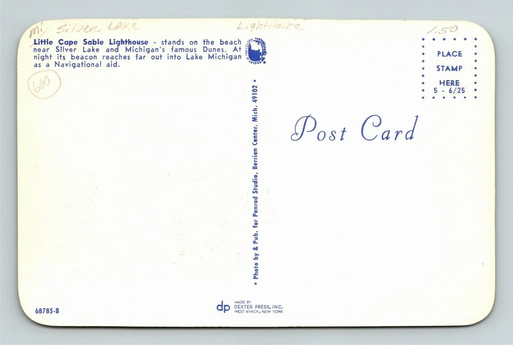 Silver Lake MI-Michigan, Little Cape Sable Lighthouse Vintage Souvenir Postcard