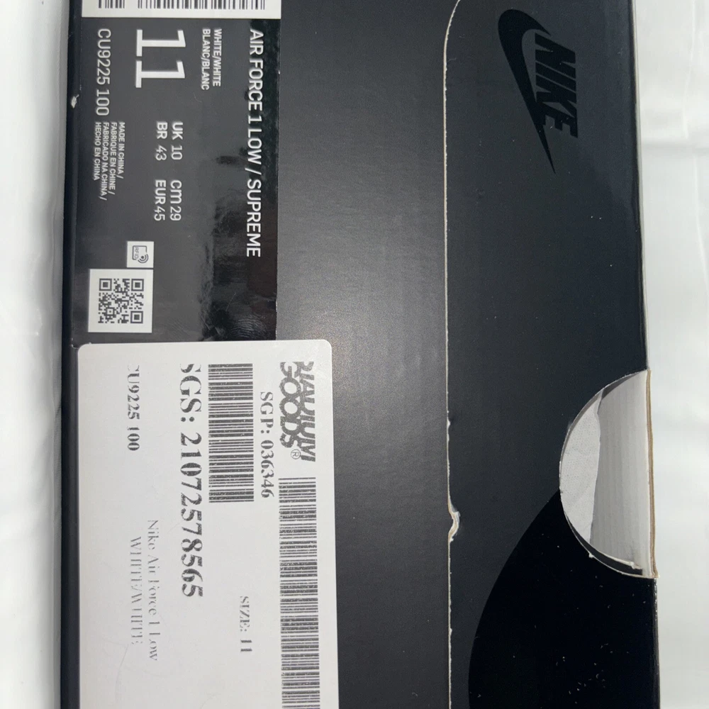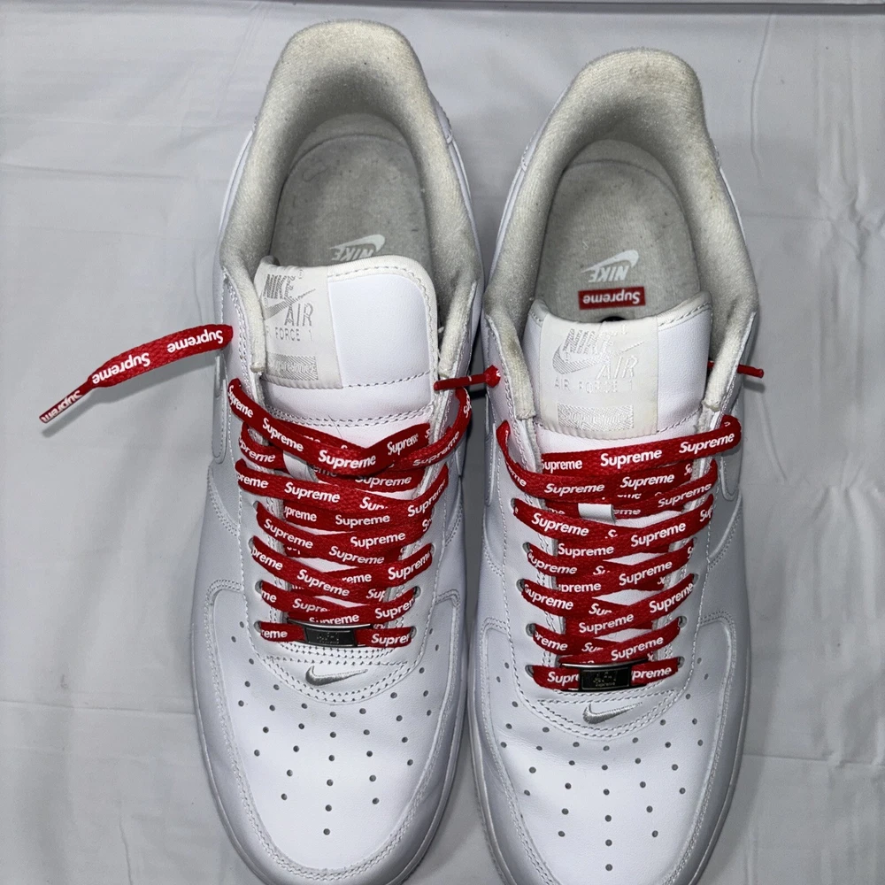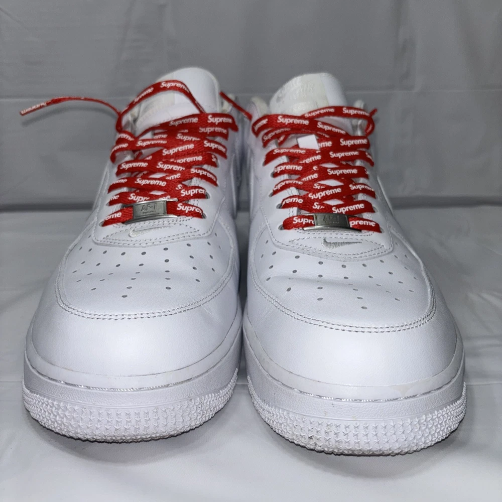 The manufacturer color is white, and the style code is CU9225-100. These shoes are part of the Nike Air Force product line, and they were released in 2020. Perfect for any athletic occasion, these sneakers are sure to turn heads. The box is the original one with the Supreme logo. They are very comfortable to use for everyday life. As used still in good condition, needs a little fresh up to bright again even more 😊 Please before purchasing feel free to reach out to us for any questions or to post more pictures.