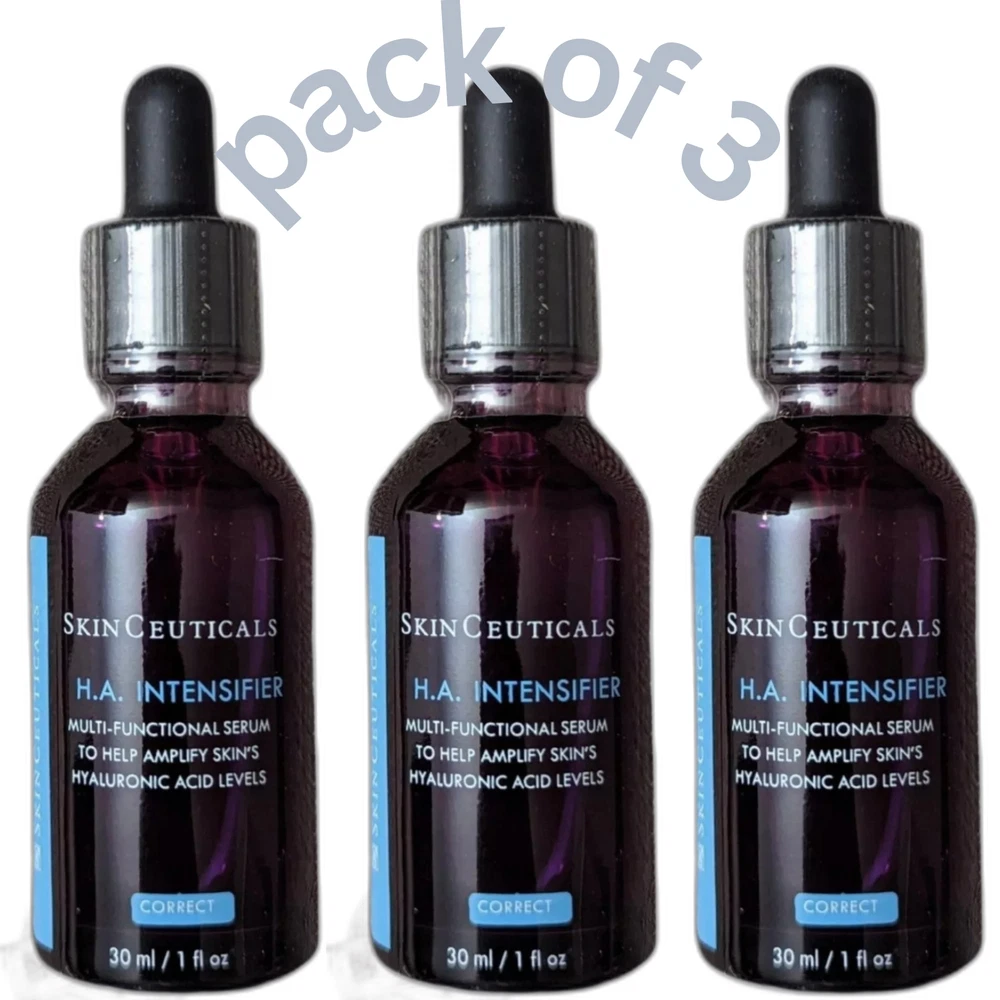 SkinCeuticals H.A. Intensifier Multi-Functional Serum - 30ml (Pack of 3) Brand New - Bulk Foam Packaging Upgrade your skincare routine with SkinCeuticals H.A. Intensifier Multi-Functional Serum , now available in a convenient pack of 3. This advanced serum is designed to enhance skin's natural hyaluronic acid levels, providing powerful hydration, firmness, and visible anti-aging benefits. Product Features: Hyaluronic Acid Boost : Increases skin’s hyaluronic acid levels by up to 30%, delivering deep hydration and helping to plump the skin. Reduces Signs of Aging : Visibly diminishes fine lines, wrinkles, and loss of firmness for smoother, more youthful-looking skin. Multi-Functional Formula : Targets multiple skin concerns, improving texture, elasticity, and overall radiance. Suitable for All Skin Types : Ideal for daily use, this serum is gentle enough for all skin types, including sensitive skin. Packaging : Bulk Foam Packaging : To offer you the best value, this pack of 3 serums comes in bulk foam packaging, ensuring each bottle is protected during transit. How to Use : Apply 4-6 drops to your face, neck, and décolletage morning and night, following cleansing and before moisturizing. Size : 30ml / 1 fl oz each (Pack of 3) Condition : Brand new in bulk foam packaging. Take advantage of this great value pack and enjoy the long-lasting hydrating and anti-aging benefits of SkinCeuticals H.A. Intensifier . Perfect for keeping your skin looking youthful and radiant!