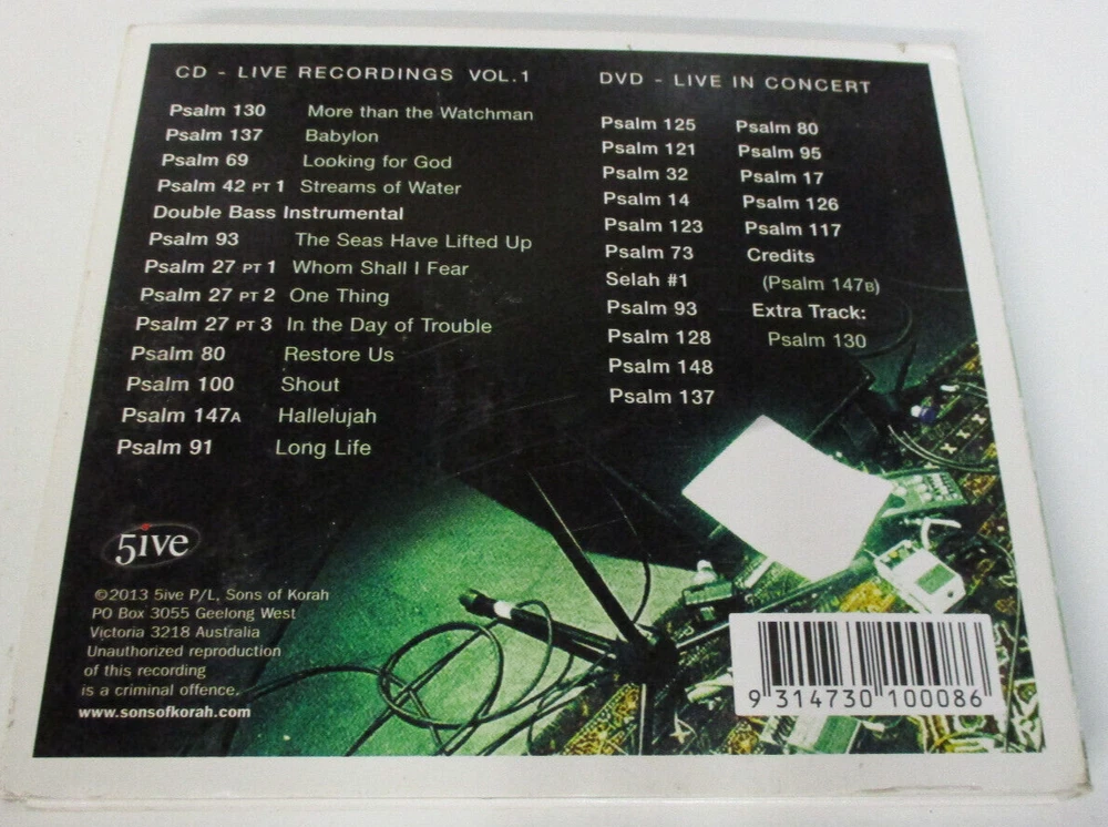 CD Details: Sons of Korah, Live Recordings Vol 1 Sons of Korah Song Titles - see photo CD is good DVD is good - light scratches which don't affect play Digipak case is good, moderate wear Buyer to pay postage where indicated. Please contact me prior to bidding if you require further information.