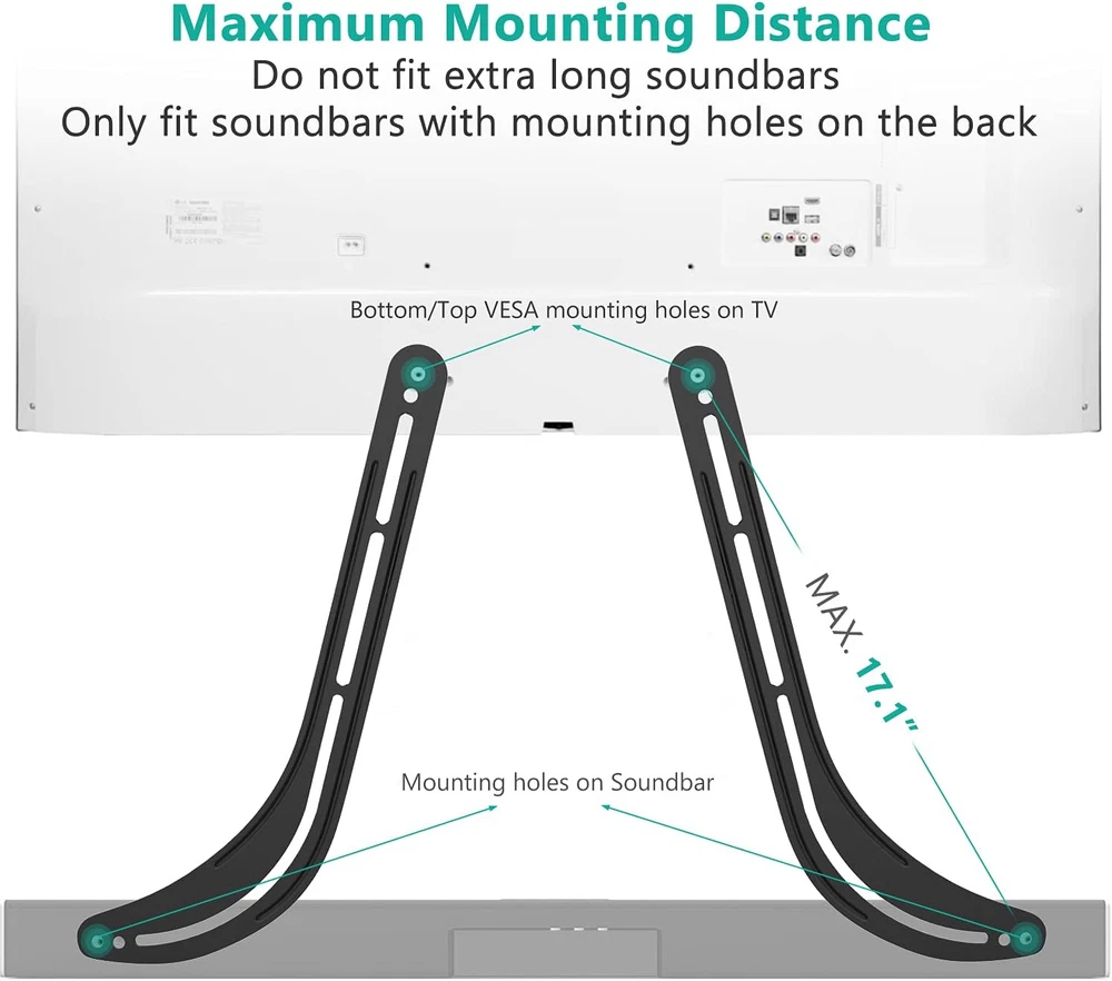 Store New Arrivals Add to Favorite View Feedback Contact Sound Bar Mount Bracket for Mounting above or under TV, Fits 32 to 70 Inch Tvs, 33 Lbs. Weight Capacity (SBR201), Black Description Unit Count 1 per Mounting Type Wall Mount Item Dimensions 17.44 x 5.9 x 7.2 inches Color Sound Bar Bracket Material Type Metal Compatible Devices Soundbars Model Number WL-SBR-201 Item Weight 2 Pounds Shape L-Shape Model Name Soundbar Mount Bracket Global Trade Identification Number 00811278020597 Additional Features Adjustable Weight Capacity Maximum 33 Pounds Compatible Phone Models iPhone 12 Compatibility: Soundbar mount bracket fits Most 32 to 70 Inch TVs. Mounting holes 200x100, 200x200, 300x300, 400x200, 400x400, 600x400mm. Dimensions: 17.5(L) x 6(W) x 0.1 (H) inches. Flexible: Adjustable bolt slots with sound bar sitting above or below the TV.Fits most TV wall mounts (fixed, tilt, full motion, articulating, interactive). Built: The brackets are constructed from black brushed high quality 2.5mm thick steel to hold sound bars up to 33lbs/15kg. Features: Stylishly connects to TV wall brackets or directly to the TVs on stands, instead of mounting to wall. Ideal for corner installations. Package includes: 2 x WALI Sound Bar Bracket , 1 x Mounting Hardware Kit, 1 x User Manual, experienced and friendly US based customer support available to assist 7 days a week. Please check the mount compatible for your Speaker: Compatible with soundbar. Check your soundbar weight less than 33 lbs (15kg). Mounting holes less that 24” (600mm)horizontally and 16”(400mm)vertically. Product Specifications: Material: 2.5mm Steel Color: Black Loading Capacity: up to 33lbs /15KG Size of TV: works with most 32"-70" flat panel TVs Installation Options: Install the soundbar on the top or bottemof the TV, install the soundar on the bottom of the TV wall mount. VESA Compatibility: 200x100, 200x200, 300x300, 400x200, 400x400, 600x400mm. Package Includes: 2 x WALI Sound Bar Bracket (Black) 1 x User Manual 1 x Mounting Hardware Kit ABOUT US We offer the best prices around on high quality products. Our E-store includes media such as books, movies, music and games while offering electronics, toys, sporting apparel, clothing, tools, general home, garden items and more. SHIPPING We are always working hard to ensure your package arrives as soon as possible. Please understand that some factors like weather, high postal traffic, and the performance of shipping companies are outside of our control. We offer free shipping to the lower 48 states and ship within 2 business days of payment, usually sooner. We do not accept P.O. Boxes. Please provide a physical address. For shipping outside of the continental USA, we only use eBay's Global Shipping Program.The item is shipped to KY and then sent to the rest of the world. International customers are responsible for all duties and taxes. Continue to check out in order to calculate costs for shipping the item to your country. Messages regarding eBay's Global Shipping Program MUST be directed at eBay EXCLUSIVELY. RETURNS We offer a 30-Day Return Policy on items which you are not completely satisfied with. You have the option for a full-refund or an exchange of the item. No returns are available on items shipped outside of the USA. PAYMENT We accept PayPal. CONTACT US This page content is yet to come Please ad us to your favorite seller and visit again later Thank You CUSTOMER SATISFACTION We try our very best to make sure every customer is completely satisfied. If there's a problem, message us! We're happy to help. WE ACCEPT Copyright © 2021 AutoDS. | All Rights Reserved
