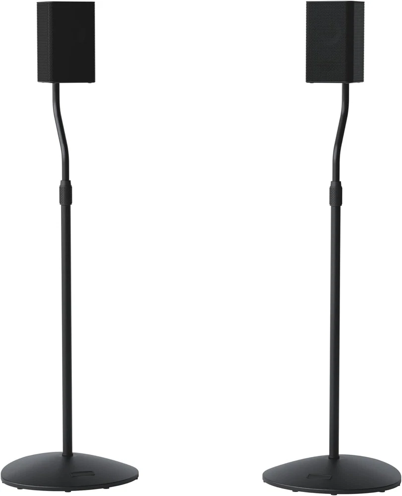 Built from heavy-gauge steel for superior performance and a wide stable base to deliver a high-quality audio experience, the SANUS height-adjustable pair of speaker stands are the ideal addition to your home theater setup. To ensure a perfectly customizable sound, the extendable tube is adjustable from 28" to 38". The easy-to-use collar makes height changes a breeze without the need for additional tools. For a clean look, the SANUS HTBS surround sound speaker stand features a concealed wire path, this built-in cable management channel helps keep your speaker wire out of the way. Truly universal, this pair of speaker stand is engineered to hold small satellite and bookshelf speakers up to 3.5lbs. Compatible with Bose, Harmon Kardon, JBL, Sony, Samsung speakers, and more. The set features three mounting configurations including L-shaped brackets, top plate, and keyhole adapter to maximize compatibility with your speakers. The installation is as easy as 1,2,3, these rear speaker stands are shipped with all the required hardware including base pads & screws. Experience the Sanus difference. The SANUS adjustable height speaker stand comes with a 5-year warranty, and top-notch Minnesota based customer service. Our experts are ready to chat 7 days a week if you have questions or run into a snag.