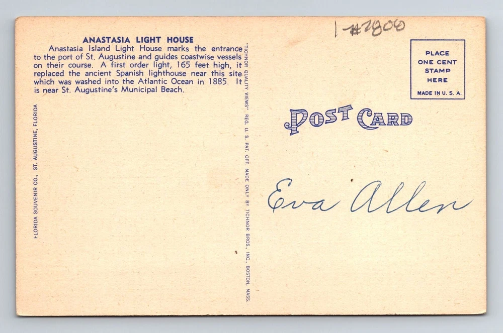 Size: Standard (5.5 x 3.5 in) Unit of Sale: Single Unit Country/Region of Manufacture: Unknown Era: Vintage Postage Condition: Unposted Material: Paper City: St Augustine Region: Florida Subject: Cities & Towns Original/Licensed Reprint: Original Theme: Cities & Towns Country: USA Type: Printed (Lithograph)