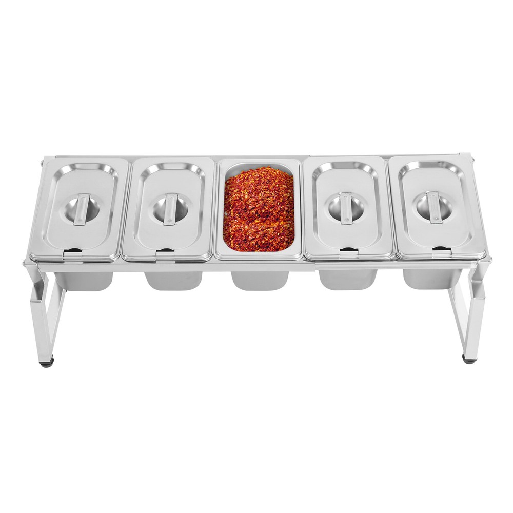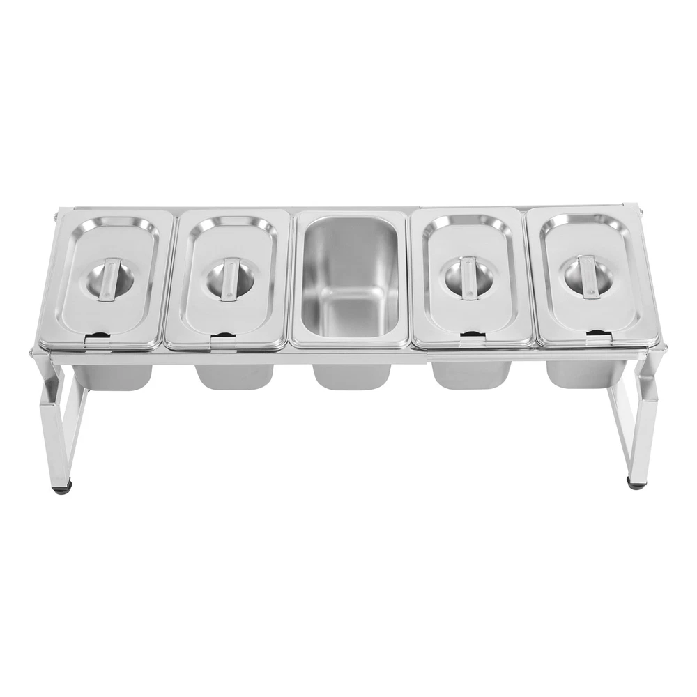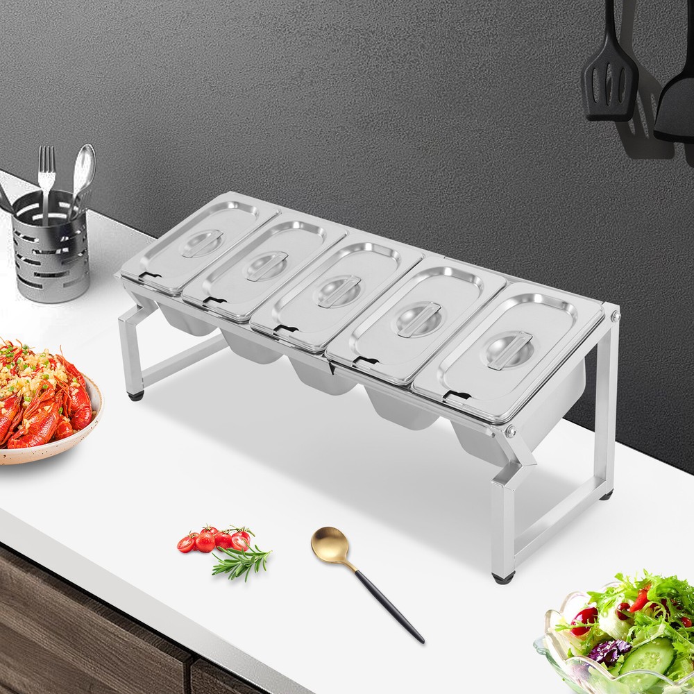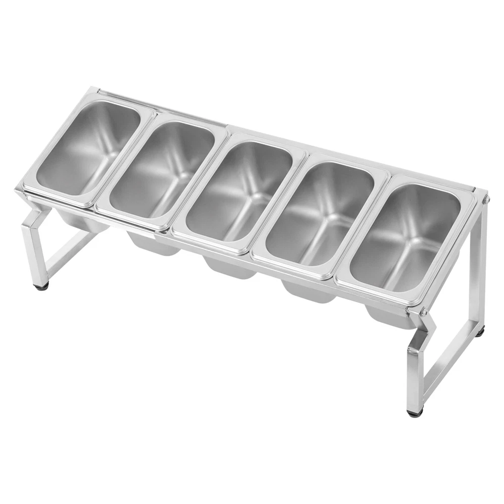 Stainless Spice Rack, Seasoning Organizer Sauce Ingredients Fruits Holder 5 Pans Welcome to haohaofacai~ Description This spice rack makes it easy to see which spices you need, so you don't have to rummage around and lock down what you need at a glance. It is made of high-quality stainless steel, which is easy to clean, durable and long-lasting. It blends in nicely and adds a splash of color to your kitchen, making cooking fun. Choose it to make the complicated spice storage well organized so that the cooking process is more convenient. Key Features Sturdy and Durable: The product is made of high-quality stainless steel and rubber, using polishing technology, with high strength, wear resistance, and long service life. Thoughtful Design: The reserved spoon notch on the lid allows the spoons to be stored directly inside. The overall forward-slanting design makes it easy for you to view and access the spices, providing you with a friendly and tidy kitchen experience. Large Capacity: Five 0.21 Gal containers allow you to store a variety of seasonings, side dishes, etc. at once without having to change and add them frequently. High Stability: The sturdy construction and four adjustable feet allow it to adapt to uneven table tops, maintain its overall stability, and allow the product to weigh 44.09 lbs. Adjustable Length: The length of this product extends to 3.44 ft, which allows you to easily adjust the number and size of containers to be placed to meet your specific usage needs. Space-saving: Its small footprint (22*7*7.8 inches) and retractable length can maximize your kitchen space while keeping your cooking essentials within reach. Effortless Clean: Thanks to its smooth surface, simple structure, and removable design, you can easily remove dust from the surface of the product with a towel. You can also wash them in the dishwasher to free up your hands. Nice Gift: This practical and beautiful product is a great holiday or housewarming gift for family, friends, and lovers so that they can enjoy a more convenient life. Details Four Non-slip Feet: They are made of rubber and can prevent the product from slipping, and avoid scratching the tabletop. Recessed Handle: It is convenient for you to easily put in your fingers to lift the lid. Application It is suitable for private kitchens, restaurants, vendors, tables, buffets, parties, shops, etc. It is suitable for storing sugar, salt, sauces, vinegar, peppers, spices, nuts, sultanas, dried fruits, teas, coffee, sugar, oils, hummus, salsa dips, salsas, side dishes, vinaigrettes and gravies, herbs, and other condiments. It can be used to store small snacks such as cheese, olives, salads, fruits, and appetizers. Specifications Style: Modern Shape: Rectangular Color: Silver Material: Stainless Steel, Rubber Surface Treatment: Polishing Mount Type: Tabletop Assembly Required: Yes Is the Dishwasher Safe?: Yes Number of Pans: 5 Each Pan Capacity: 0.8L/ 0.21 Gal Max. Load Capacity: 20kg/ 44.09 lbs Max. Adjustable Length: 1.05m/ 3.44 ft Product Size: 55.88*17.78*19.81cm/ 22*7*7.8 in Package Size: 40*35*16cm/ 15.75*13.78*6.30 in Gross Weight: 2.4kg/ 5.29 lbs Net Weight: 1.8kg/ 3.97 lbs Package Included 1* Spice Rack 5* Pans 5* Lids Notes 1.Please double-check that the dimensions of this product are suitable before purchasing. 2.Please note that seasoning is not included in this product. Please allow the slight color difference caused by the shooting light and 1-3cm error due to manual measurement, and make sure you do not mind before you order. Payment Delivery details Terms of sales About us Contact us Payment We accept ebay payment 。 Fees such as import duties, taxes are not included in the item price or shipping costs. These charges are the buyer's responsibility. Delivery details Shipping: 2-9 working days to: USA Terms of sales We maintain high standards of excellence and strive for hundred percent customer satisfaction. Feedback is very important to us. We hope that you contact us immediately before you give neutral or negative feedback, so that we can address your concerns. It is impossible to address issues if we do not know about them! About us Your satis faction is our ultimate goal. We work hard to earn your trust and future business. Our certified technicians have tested each item before shipping. The unit comes with 1 year limited warranty on all manufacturing defects. a) If you receive a defective item, you may return it or ask for a discount. Please contact us within 14 days after you receive the package. b) What you returned must be intact and in its original packaging as re? u. Customer is responsible for shipping costs of the returned item. c) We will cover the cost of shipping back t with the shipping rate indicated in the registration page. We will send you a new unit or refund the full payment you paid. Thank you. Contact us Business Hour Business Hour: Monday To Friday: 8:30 AM to 5:00 PM (Beijing China time) Due to time zones, our reply to your questions may not be immediately. But within above working time, we will reply your email within 24 hours. If it's non-workdays, please kindly be patient and wait till Monday. Please contact us with ebay message. Please feel free to contact us if you have any questions. Monday To Friday: 8:30 AM to 5:00 PM (Beijing China time) Due to time zones, our reply to your questions may not be immediately. But within above working time, we will reply your email within 24 hours. If it's non-workdays, please kindly be patient and wait till Monday. Please contact us with ebay message. Please feel free to contact us if you have any questions. Fe'a'tu're's ★Stable performance and high quality★ Item Height 7.8in Item Length 22in Item Width 7 in Type Spice Rack Material Stainless Steel, Rubber Color Silver Number of Pans 5 Each Pan Capacity 0.8L/ 0.21 Gal Max. Load Capacity 20kg/ 44.09 lbs Product Size 55.88*17.78*19.81cm/ 22*7*7.8 in Brand TBVECHI MPN Does not apply