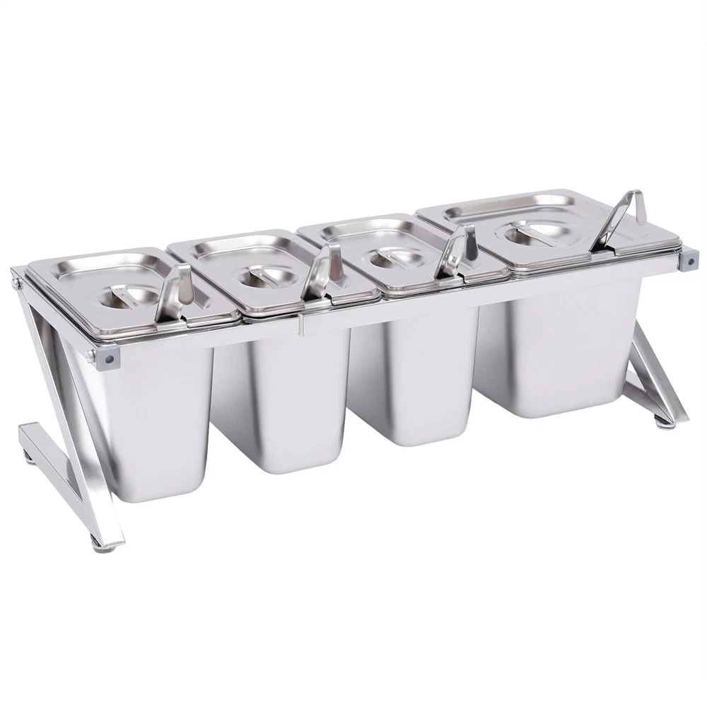 Commercial Seasoning Spice Rack Organizer Shelf for Restaurant Stainless Steel Welcom to alwaytty03 Description A neat, clean, and stylish kitchen need a user-friendly spice rack to store and organize your abundant spices for you. This sturdy and stable shelf not only effectively uses the vertical space of the countertop, but also easily avoids the embarrassment of tipping over the spice pan. This countertop inclined spice rack will give you a neat and comfortable kitchen to enjoy your cooking! Key Features High-quality Material: The shelf is made of high-quality 304 stainless steel, and the pans are made of 201 stainless steel, both of which are strong, wear-resistant, rust-resistant, and corrosion-resistant to ensure long service life. Wide Application: The stable performance of stainless steel is resistant to acids and alkalis, making it suitable for a variety of seasonings and safe for use in dishwashers, ovens, and freezers. Large Capacity: With a total of one 1/6 pans (2.32 Qt) and three 1/9 pans (1.69 Qt), this countertop spice rack set can be used not only for everyday household needs but also in restaurants and canteens. The large capacity also eliminates the need for frequent refilling. Telescoping Shelf: The support telescoping tube is adjustable in length (14.17-23.6in), allowing you to choose the number of pans to hold depending on your needs, as well as slide the pans to the left or right for easy access as you wish. Space Saving: It makes good use of the vertical space of the countertop to organize your kitchen spices or sauces in an orderly manner, keeping your kitchen neat and tidy High Load-bearing Capacity: Compared with directly placing the food pans on the tabletop, which tends to be knocked over or overturned, this frame adopts durable stainless steel and provides firm support. It ensures a good load-bearing capacity and can stably accommodate multiple filled pans. Easy to Install: Its simple structure and complete screw accessories allow you to easily complete the installation. All you have to do is attach and tighten the shelf with the screws provided, saving you time and effort. Easy to Clean: The removable pans and the electrolytic processed stainless steel, make cleaning a breeze. You can clean it directly with water without taking too much time. Easy to Store: The detachable shelf and stackable pans will easily fit in any wall cabinet without taking up too much space. Customer Service: We aim to provide quality products and services. If you have any problems, please feel free to contact us. We will reply and solve the problem for you as soon as possible. Details Practical Lid: Each pan comes with a lid to protect the spices from dust and moisture, maintaining the hygiene and quality of the spices. A recess on the lid ensures that the spoon is securely placed without affecting the seal of the lid. In addition, the top of the lid is designed with a handle for your convenience. Adjustable Foot Pad: The adjustable non-slip feet at the bottom adapt well to uneven countertops, making placement stable without tilting or slipping. It also protects the countertop from scratching. Rounded Corners: The rounded corners and smooth polished edges without burrs protect your hands from scratches and scrapes, making them more secure to use. Practical Ladles : Each pan is equipped with a ladle to avoid mixing spices. The ladle also makes it easier to control the number of spices precisely for a delicious meal. Application It is widely used in the home or commercial kitchens, canteens, pantries, cafes, beverage stores, and restaurants to store condiments, spices, sauces, jams, sweet soups, coffee beans, sugar, nuts, grains, etc. Specification Shelf Material: 304 Stainless Steel Pan Material: 201 Stainless Steel Color: Silver Installation Type: Freestanding Process: Polished, Electrolysis Special Feature: Expandable Spice Rack Number of Shelves: 1 Food Pan Quantity: 3 x 1/9 Pans + 1 x 1/6 Pan 1/9 Pan Dimensions: 17.5*11*15cm/6.88*4.33*5.9in 1/9 Pan Capacity: 1.6L/1.69Qt 1/6 Pan Dimensions: 17.5*16.5*15cm/6.88*6.49*5.9in 1/6 Pan Capacity: 2.2L/2.32Qt Shelf Dimension: 50*18*20cm/19.7*7.1*7.9in Shelf Length Range: 36-60cm/14.17-23.6in Packing Size: 43*32*22cm/17*12.6*8.7in Gross Weight: 3.5kg/7.7lbs Net Weight: 3.1kg/6.8lbs Package Included 2 x Side Support Frames 2* Telescopic Tubes 3 x 1/9 Pans 1 x 1/6 Pan 4 x Ladles 4 x Lids 4 x Adjustable Foot Pads All Accessories Required for Installation Notes Please note that the shelf can only be adjusted to a maximum of 60cm/23.6in. Please allow the slight color difference caused by the shooting light and 1-3cm error due to manual measurement, and make sure you do not mind before you order. Payment Delivery details Terms of sales About us Contact us Payment We accept ebay payment 。 Fees such as import duties, taxes are not included in the item price or shipping costs. These charges are the buyer's responsibility. Delivery details Shipping: 2-9 working days to: USA Terms of sales We maintain high standards of excellence and strive for hundred percent customer satisfaction. Feedback is very important to us. We hope that you contact us immediately before you give neutral or negative feedback, so that we can address your concerns. It is impossible to address issues if we do not know about them! About us Your satis faction is our ultimate goal. We work hard to earn your trust and future business. Our certified technicians have tested each item before shipping. The unit comes with 1 year limited warranty on all manufacturing defects. a) If you receive a defective item, you may return it or ask for a discount. Please contact us within 14 days after you receive the package. b) What you returned must be intact and in its original packaging as re? u. Customer is responsible for shipping costs of the returned item. c) We will cover the cost of shipping back t with the shipping rate indicated in the registration page. We will send you a new unit or r
