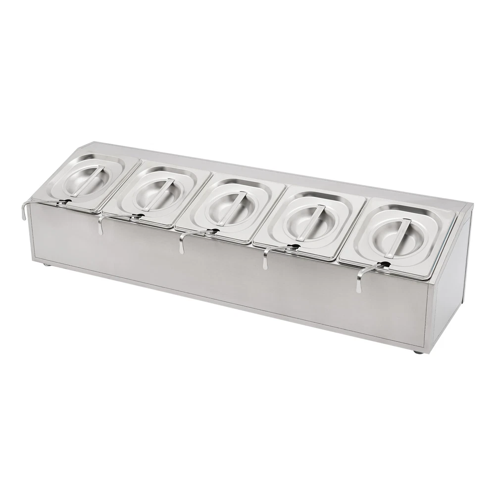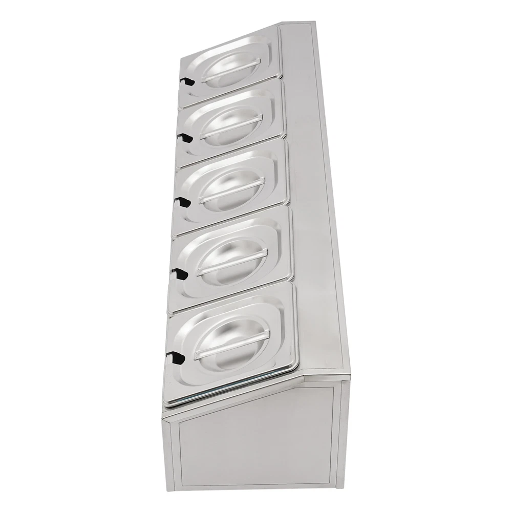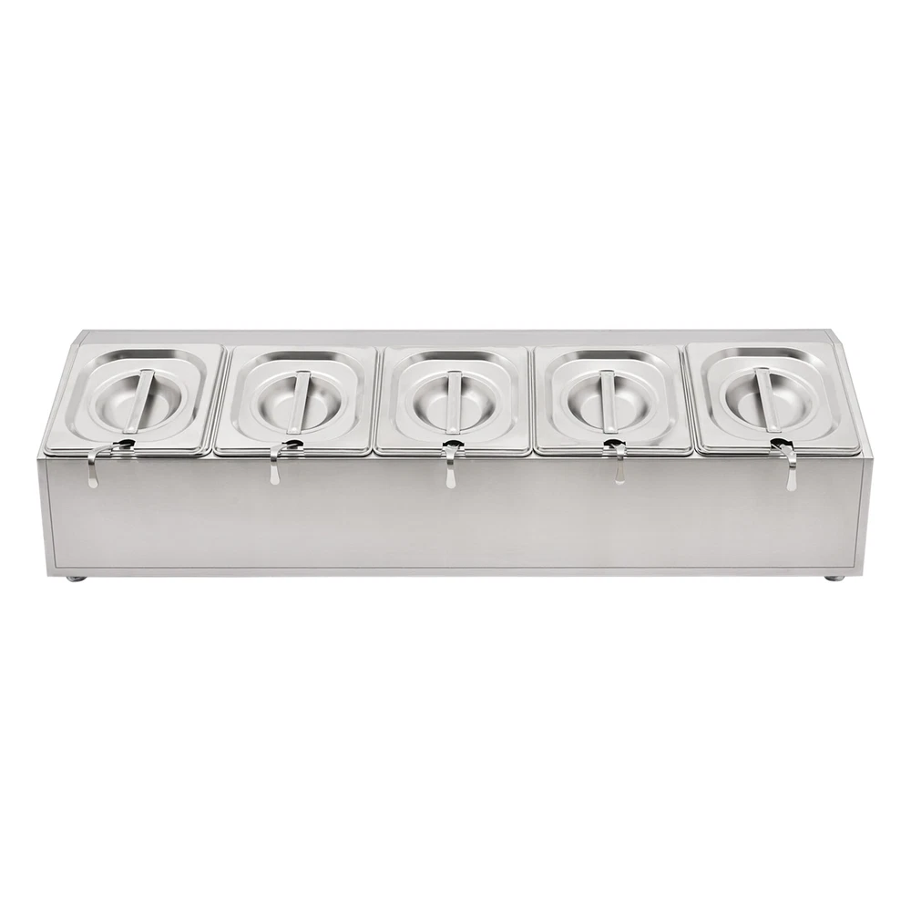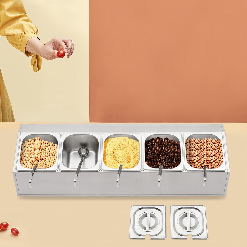 Spice Rack 5 Pans Stainless Steel Shelf Kitchens Seasoning Organizer Holder Description If your store is missing a practical and aesthetically pleasing spice rack shelf to help you organize and display your spices, then you can't miss this spice rack s helf . Made of high-quality stainless steel, this product has a large storage capacity that can hold up to 5 food trays. It will surely be your reliable kitchen helper to keep your countertops organized and your space tidy. Key Features Good Material: Premium stainless steel as well as the exquisite polishing process, make this product bright, wear-resistant , high-temperature resistant , safe to use, and less prone to rust and deformation, ensuring a long service life. Humanized Design: This product adopts the inclined design, which is clearer in sight and more convenient for picking up and placing items. In addition, the 5 pans are placed separately to effectively avoid cross flavors. Large Storage Capacity: This set contains 5 food pans, each with a capacity of about 0.9Qt, providing enough space for you to categorize your ingredients and seasonings. Good Stability: High-quality material and trapezoidal design make it have good stability, so you don't have to worry about shaking and tipping when you use it. Easy to Clean: The simple structure and smooth surface that does not easily adhere to stains, and detachable pans allow you to easily clean with water, a soft towel, and a dishwasher. Simple Installation: This product has a simple structure and complete accessories, you only need a few simple steps to install, which saves time and labor. Protective Packaging: The pearl cotton can better protect your product during transportation and make it delivered to you completely to the greatest extent. Good Customer Service: We stand behind all our guests and look forward to assisting you with your purchase. It is our pleasure to answer your confusion and questions. The end of the story between us is not "we sell and you buy". Details Convenient Spoons: All 5 spoons have hanging holes and curved handles for easy scooping of seasonings and storage to dry. Practical Lid: The lid prevents dust from getting into the pan and the handle on the top allows you to open and close it easily. Meanwhile, the seam fits the spoon very well, making it easy for you to place the spoon in the pan. Smooth Edge: The rounded and smooth edges not only add to the aesthetics of the product but also improve the safety of use. Application This product is suitable for organizing various ingredients and materials, including but not limited to seasonings, spices, sauces, jams, sweet soups, coffee beans, fruits, and vegetables. It can be widely used in homes, kitchens, restaurants, fruit stores, pantries, cafes, beverage stores, eateries, and more. Specification Color: Silver Style: Modern Shape: Trapezoidal Material: Stainless Steel Process: Polishing Assembly Required: Yes Is Dishwasher Safe: Yes Mounting Type: Freestanding Number of Pans: 5 Number of Spoons: 5 Each Pan Capacity: 0.85L/ 0.9Qt Gross Weight: 3.7kg/ 8.16 lbs Net Weight: 2.9kg/ 6.39 lbs Package Size: 86*24.5*22 cm/ 33.86*9.65*8.66 in Product Size: 85.6*24.5*23 cm/ 33.7*9.6*9.1 in Package Included 1* Spice Rack Shelf 5* Pans 5* Lids 5* Spoons Notes Please allow the slight color difference caused by the shooting light and the 1-3 cm error due to manual measurement, and make sure you do not mind before ordering. Payment Delivery details Terms of sales About us Contact us Payment We accept ebay payment 。 Fees such as import duties, taxes are not included in the item price or shipping costs. These charges are the buyer's responsibility. Delivery details Shipping: 2-9 working days to: USA Terms of sales We maintain high standards of excellence and strive for hundred percent customer satisfaction. Feedback is very important to us. We hope that you contact us immediately before you give neutral or negative feedback, so that we can address your concerns. It is impossible to address issues if we do not know about them! About us Your satis faction is our ultimate goal. We work hard to earn your trust and future business. Our certified technicians have tested each item before shipping. The unit comes with 1 year limited warranty on all manufacturing defects. a) If you receive a defective item, you may return it or ask for a discount. Please contact us within 14 days after you receive the package. b) What you returned must be intact and in its original packaging as re? u. Customer is responsible for shipping costs of the returned item. c) We will cover the cost of shipping back t with the shipping rate indicated in the registration page. We will send you a new unit or refund the full payment you paid. Thank you. Contact us Business Hour Business Hour: Monday To Friday: 8:30 AM to 5:00 PM (Beijing China time) Due to time zones, our reply to your questions may not be immediately. But within above working time, we will reply your email within 24 hours. If it's non-workdays, please kindly be patient and wait till Monday. Please contact us with ebay message. Please feel free to contact us if you have any questions. Monday To Friday: 8:30 AM to 5:00 PM (Beijing China time) Due to time zones, our reply to your questions may not be immediately. But within above working time, we will reply your email within 24 hours. If it's non-workdays, please kindly be patient and wait till Monday. Please contact us with ebay message. Please feel free to contact us if you have any questions.