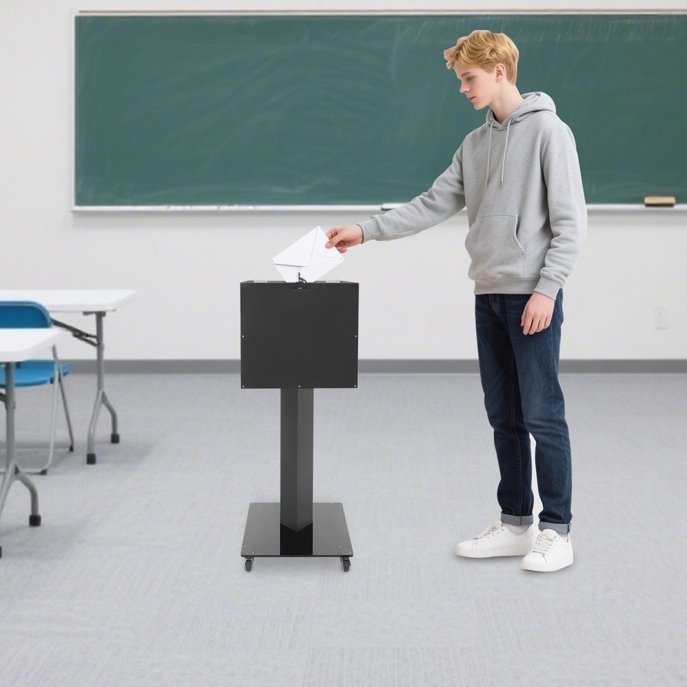 Come and buy now, enjoy a worry free life! Description Our ballot box features a floor-standing structure equipped with wheels, ensuring both stable positioning and flexible maneuverability. Its sleek exterior integrates into various event venues, elevating the space's aesthetic. Whether for collecting suggestion letters in commercial scenarios or gathering feedback at events, it proves to be an ideal assistant! Key Features Crafted for Endurance: Meticulously constructed from premium acrylic, this product is not easy to deform and is durable, engineered to withstand long-lasting daily use. Powerful All-rounder: This ballot box is renowned for its spacious interior and diverse applications. Whether used as a donation box to collect charitable contributions, a raffle box to hold lucky selections, or a family mailbox to convey warm greetings, it excels in every role. Moveable & Fixable with Ease: This product is equipped with 4 universal wheels (2 with brakes), not only providing convenient mobility but also ensuring stable fixation in the desired position, which allows for flexible adjustment of its position. Stand-Alone Design: Its stable floor-standing structure eliminates the need for extra support, allowing free placement in offices, exhibitions, stores, and other venues, integrating into different spatial layouts. Clean-Lined Generous Look: This product showcases a sense of graceful beauty through its simple color and smooth lines, allowing it to blend harmoniously into a variety of environments. This carefully crafted design highlights its aesthetic value, making it a striking addition to settings. Details Secure Lock Mechanism: The box features a lock to safeguard its contents, keeping it securely closed and deterring unauthorized access. The set of two keys lets you easily designate one as a backup, offering peace of mind in case the other is lost. Silky-smooth Edge: This product features a smooth edge design that not only gives it aesthetic appeal but also significantly improves safety during use, demonstrating extreme attention to detail and deep consideration for user care. Application It can be used as a suggestion box in offices, a ballot box for meetings or elections, a feedback box, an event registration box, a donation box in churches, a fundraising box for charity events, a raffle box, a competition box, a mailbox for families, and more. Specification Color: Black Style: Modern Hole Shape: Round Material: Acrylic Assembly Required: Yes Mount Type: Floor-standing Number of Keys: 2 Number of Wheels: 4* Universal Wheels(2 with Brakes) Box Size: 35*35*35cm/13.78*13.78*13.78in Total Product Height: 99cm/38.98in Package Size: 60.5*39*18cm/23.82*15.35*7.09in Gross Weight: 5.35kg/11.79lbs Net Weight: 4.7kg/10.36lbs Package Included 1* Ballot Box 2* Keys 4* Universal Wheels Other Accessories for Assembly Notes Please confirm the dimensions before purchasing. Please note this product does not include money, letters, or prizes. Please allow the slight color difference caused by the shooting light and 1-3cm error due to manual measurement, and make sure you do not mind before ordering. Payment Delivery details Terms of sales About us Contact us Payment We accept ebay payment 。 Fees such as import duties, taxes are not included in the item price or shipping costs. These charges are the buyer's responsibility. Delivery details Shipping: 2-9 working days to: USA Terms of sales We maintain high standards of excellence and strive for hundred percent customer satisfaction. Feedback is very important to us. We hope that you contact us immediately before you give neutral or negative feedback, so that we can address your concerns. It is impossible to address issues if we do not know about them! About us Your satis faction is our ultimate goal. We work hard to earn your trust and future business. Our certified technicians have tested each item before shipping. The unit comes with 1 year limited warranty on all manufacturing defects. a) If you receive a defective item, you may return it or ask for a discount. Please contact us within 14 days after you receive the package. b) What you returned must be intact and in its original packaging as re? u. Customer is responsible for shipping costs of the returned item. c) We will cover the cost of shipping back t with the shipping rate indicated in the registration page. We will send you a new unit or refund the full payment you paid. Thank you. Contact us Business Hour Business Hour: Monday To Friday: 8:30 AM to 5:00 PM (Beijing China time) Due to time zones, our reply to your questions may not be immediately. But within above working time, we will reply your email within 24 hours. If it's non-workdays, please kindly be patient and wait till Monday. Please contact us with ebay message. Please feel free to contact us if you have any questions. Monday To Friday: 8:30 AM to 5:00 PM (Beijing China time) Due to time zones, our reply to your questions may not be immediately. But within above working time, we will reply your email within 24 hours. If it's non-workdays, please kindly be patient and wait till Monday. Please contact us with ebay message. Please feel free to contact us if you have any questions. On Apr 1, 2026 at 19:47:58 PDT, seller added the following information:
