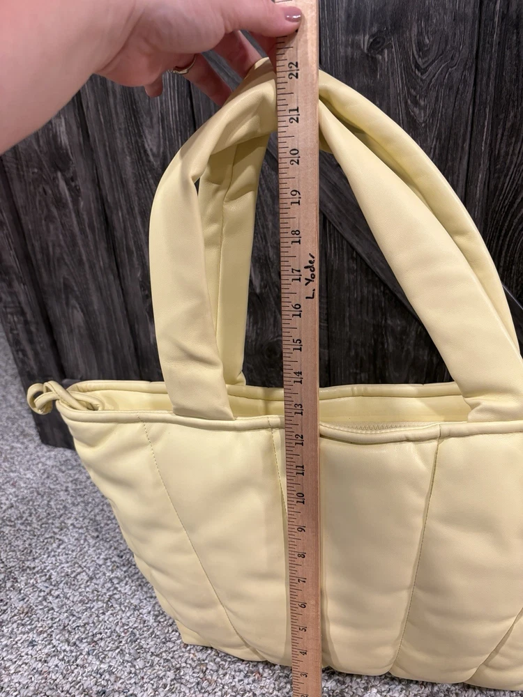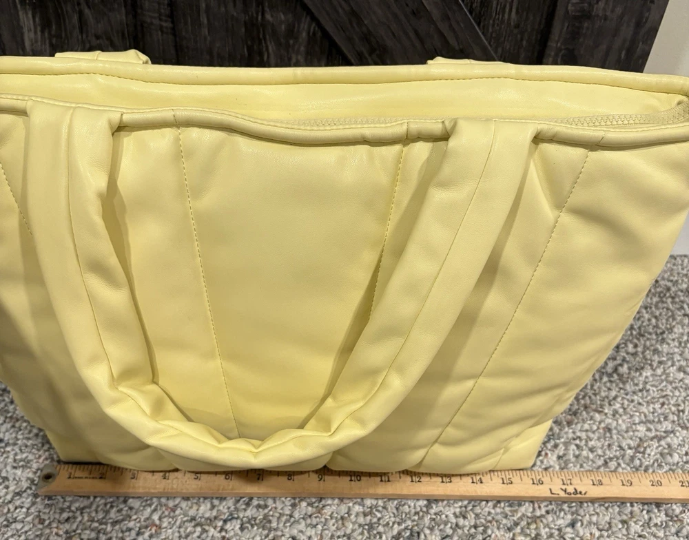This tote is a game-changer! The buttery-soft material feels luxurious, and the vibrant yellow shade adds a fun pop of color to any outfit. It’s surprisingly roomy—fits my laptop, notebook, and daily essentials without feeling bulky. The design is sleek yet practical, perfect for work, errands, or even a weekend outing. Love how lightweight it is while still feeling durable. A must-have for anyone who wants style and function in one!